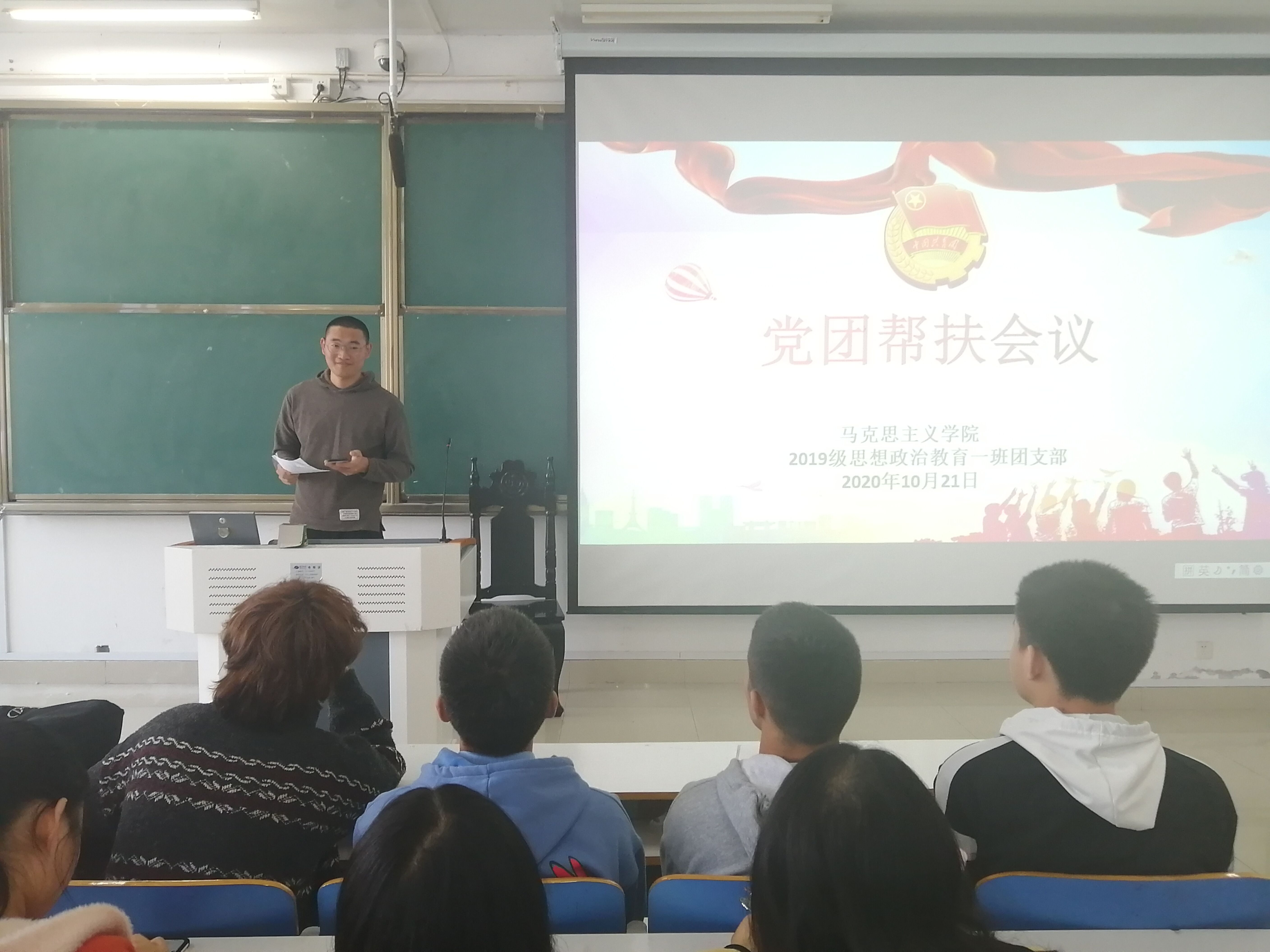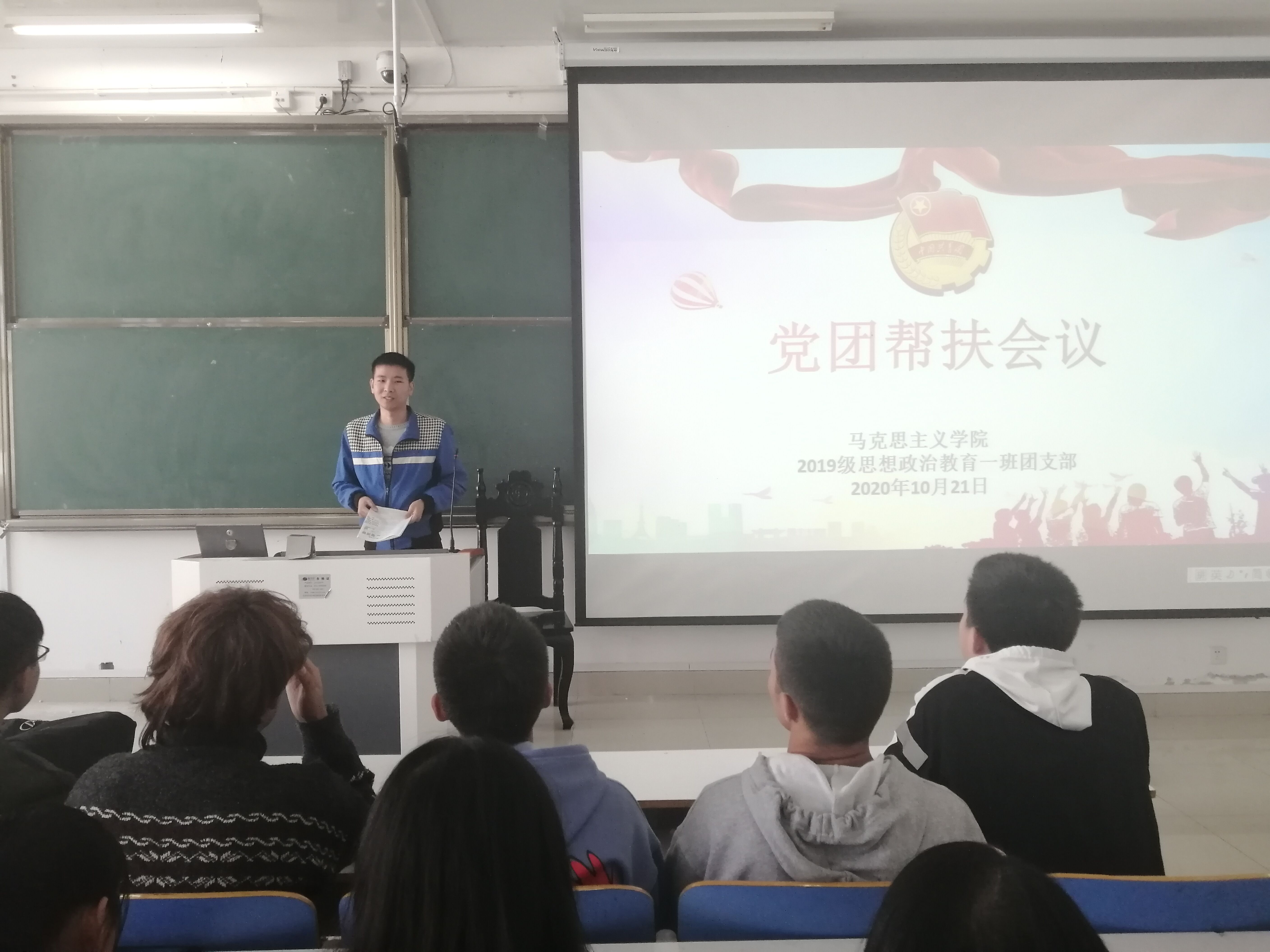 10月21日上午,小说狂人 2019级思想政治教育一班在社科楼514教室召开党团帮扶会。2019级思想政治教育一班全体成员参加本次会议,由团支书贾子漪主持。