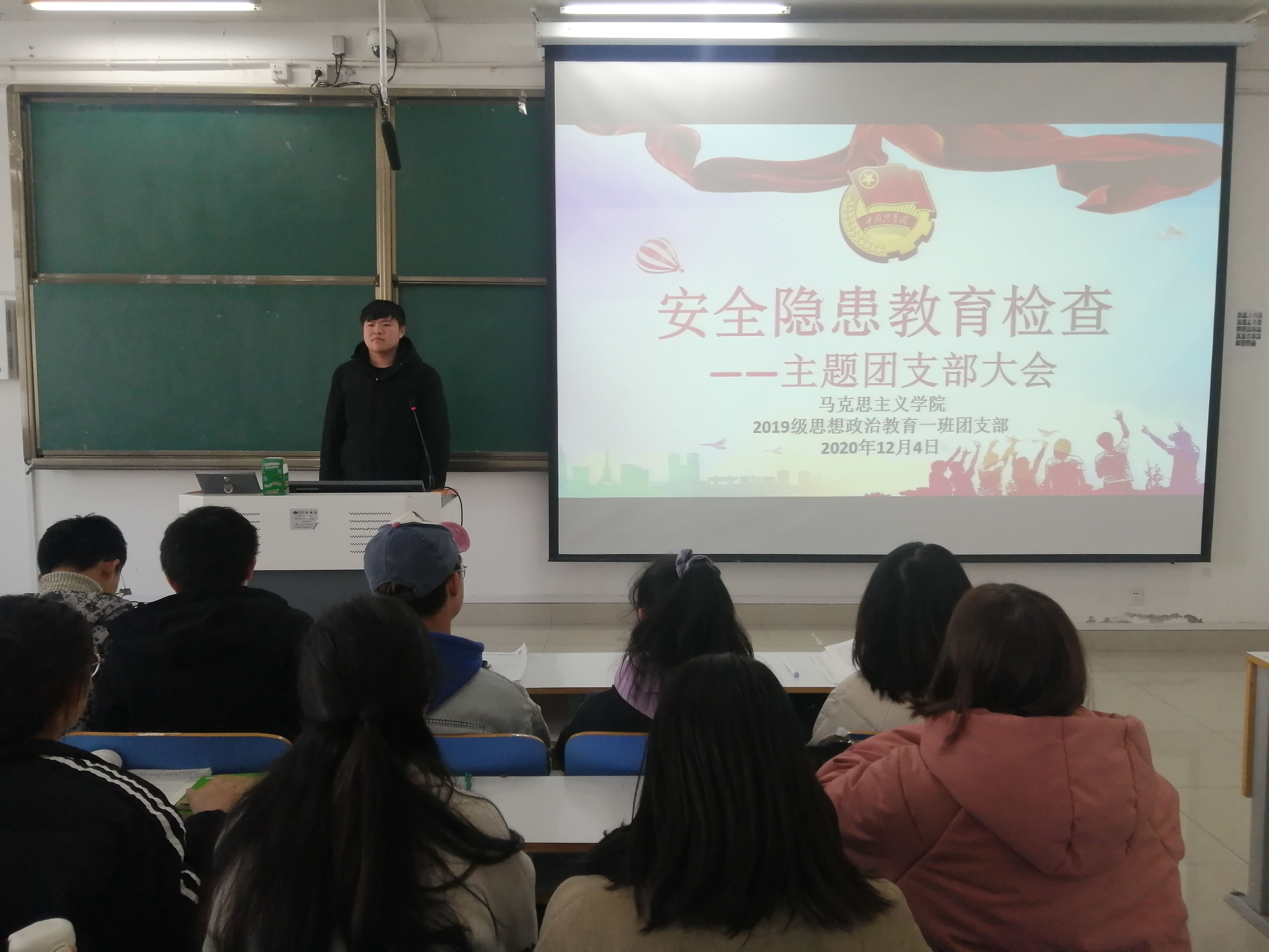 为进一步加强同学们的安全教育观念,提高同学们的避险能力。12月4日上午,小说狂人 2019级思想政治教育一班第一团支部在社科楼516教室召开“安全隐患教育”主题团支部大会。小说狂人 2019级思想政治教育一班全体成员参加本次会议,会议由副班长王民主持。