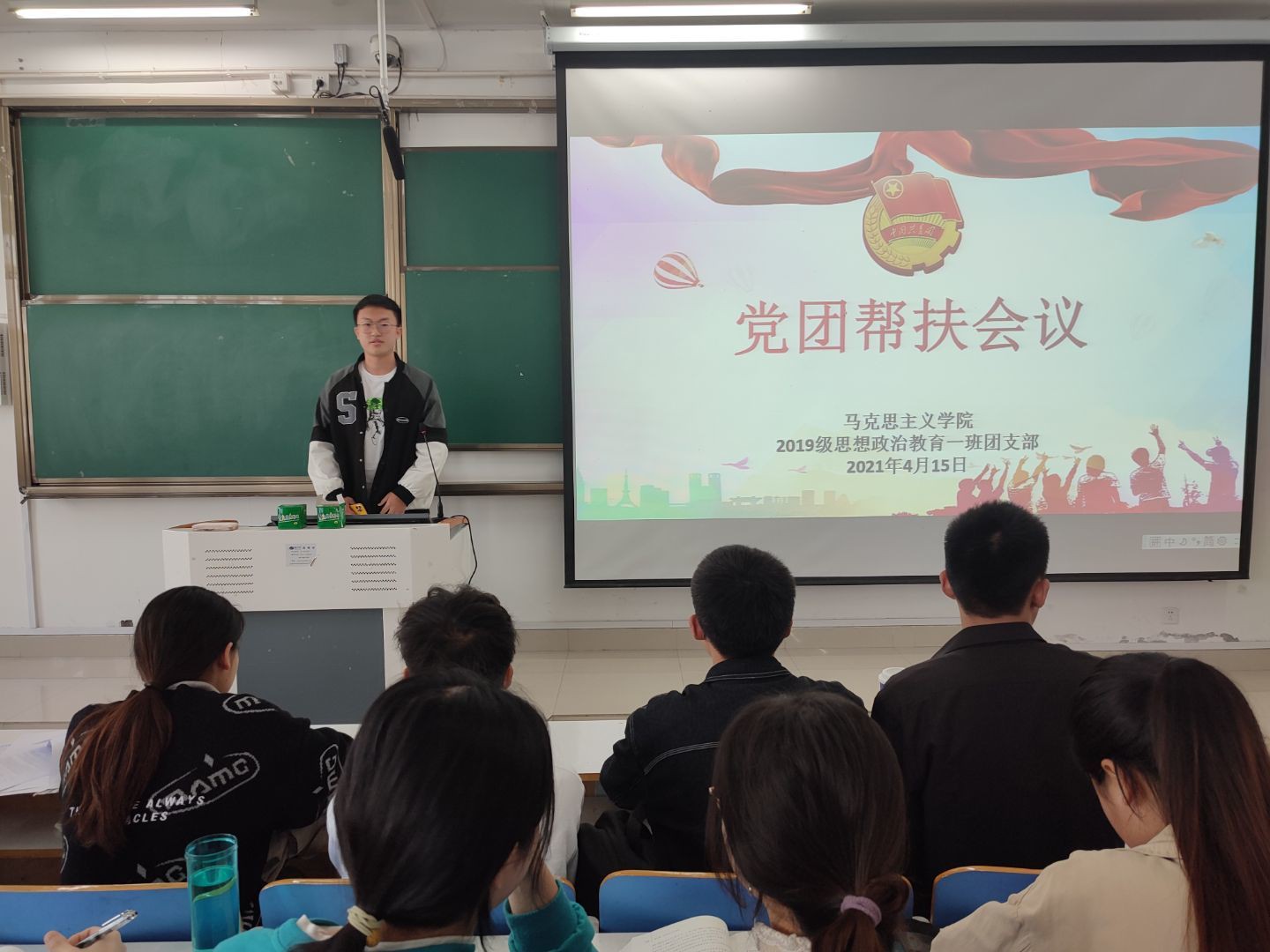 4月15日上午,小说狂人 2019级思想政治教育一班在社科楼514教室召开党团帮扶会。2019级思想政治教育一班全体成员参加本次会议,会议由团支书贾子漪主持。