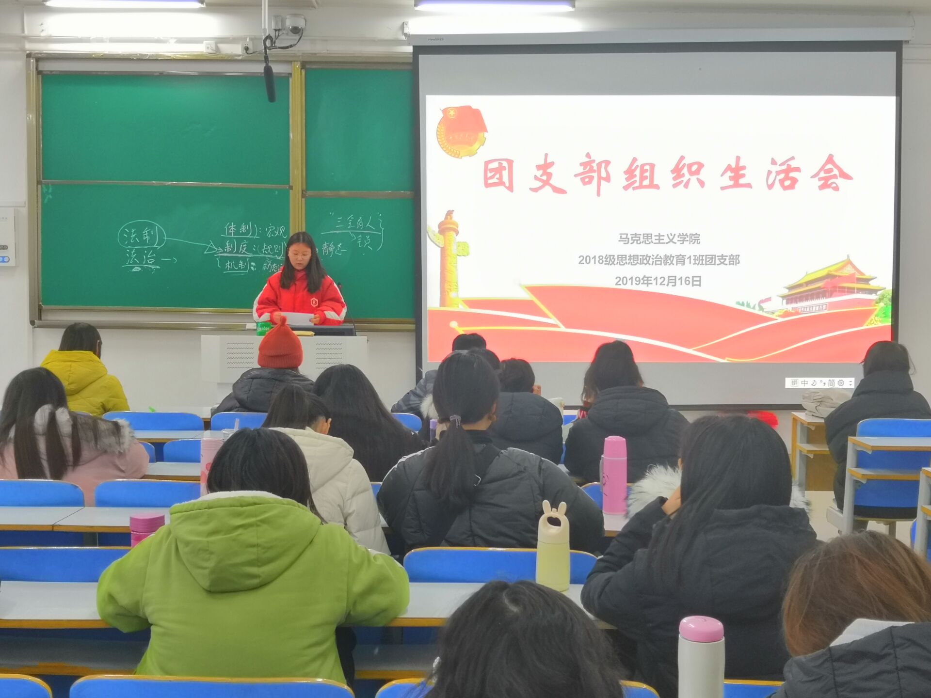 12月16日上午,小说狂人 2018级思想政治教育一班在社科楼514教室顺利开展团支部组织生活会。2018级思想政治教育一班全体同学共同参加此次会议。此次会议由团支书靳雨露主持。