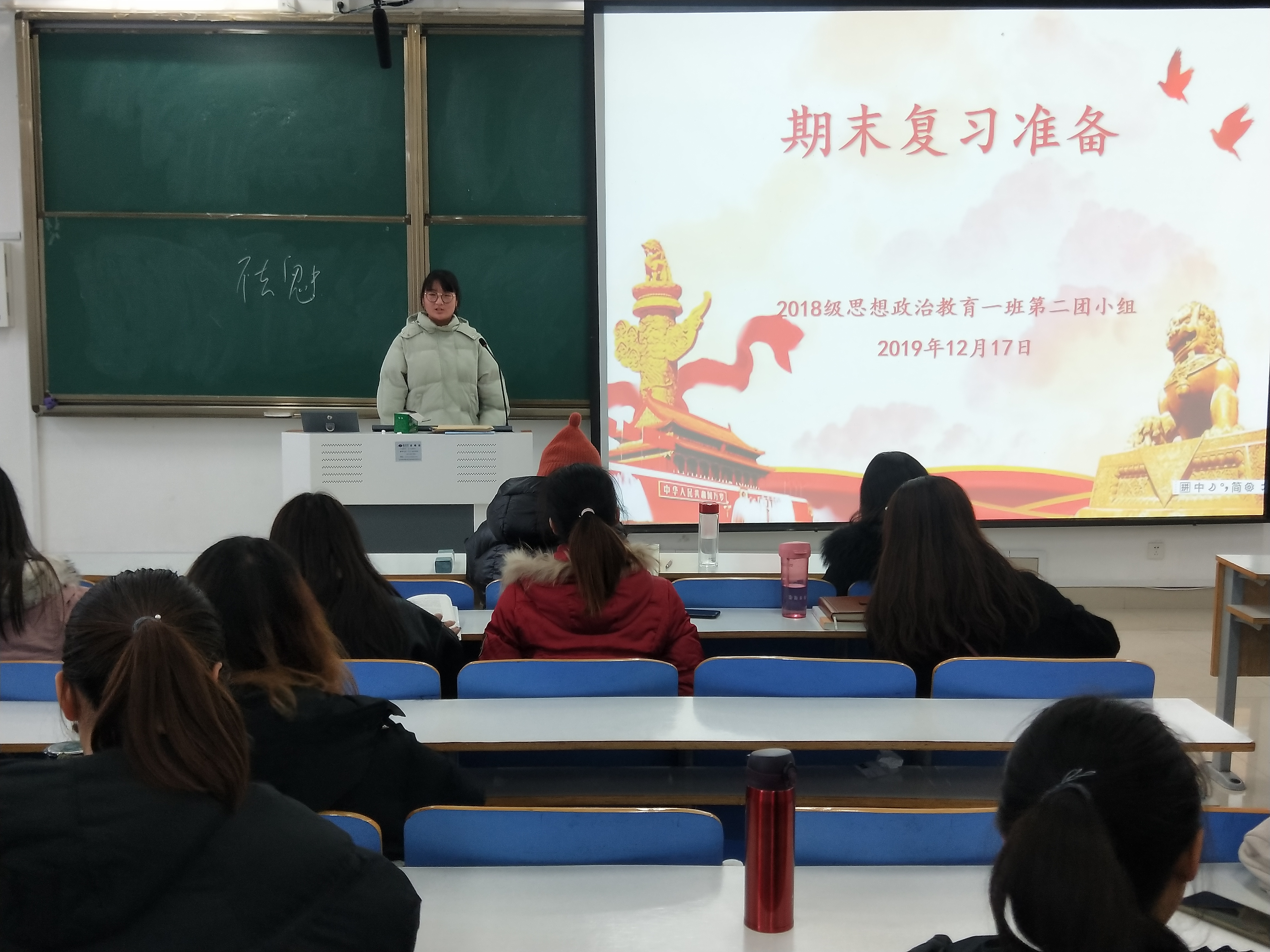 为鼓励同学们积极准备期末考试,做好考前复习规划,12月17日上午,小说狂人 2018级思想政治教育一班第二团小组在社科楼514教室顺利开展“期末复习准备”主题团会。第二团小组全体成员共同参加此次团会。团会由团小组成员布玉丹主持。