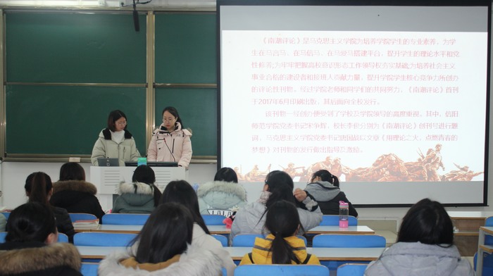 为让同学们深入了解《南湖评论》以及南湖调研,提高同学们写作与调研能力,激励同学们更好地写稿投稿,12月26日上午,2017级思想政治教育一班和2018级全体学生在社科楼514教室召开了南湖写作交流会。会议由辅导员曹菁菁主持。
