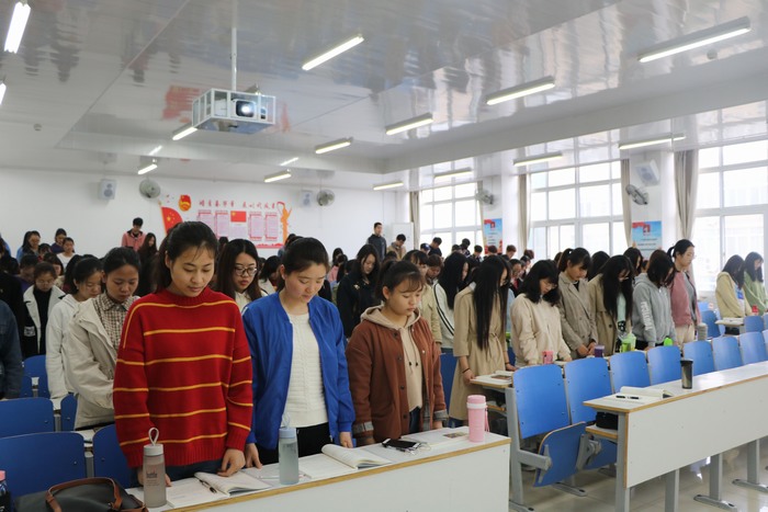 4月4日上午,小说狂人 2017级思想政治教育一班全体同学在社科楼516教室召开悼念烈士主题班会,全班同学共同参与,会议由团支书谢文静主持。