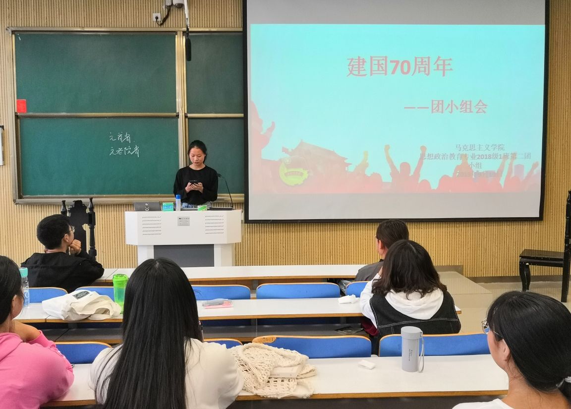 9月16日下午,小说狂人 2018级思想政治教育一班第二团小组在社科楼515教室顺利开展“建国70周年”主题团会。第二团小组全体成员共同参加此次团会。团会由团小组成员陈璐龙主持。
