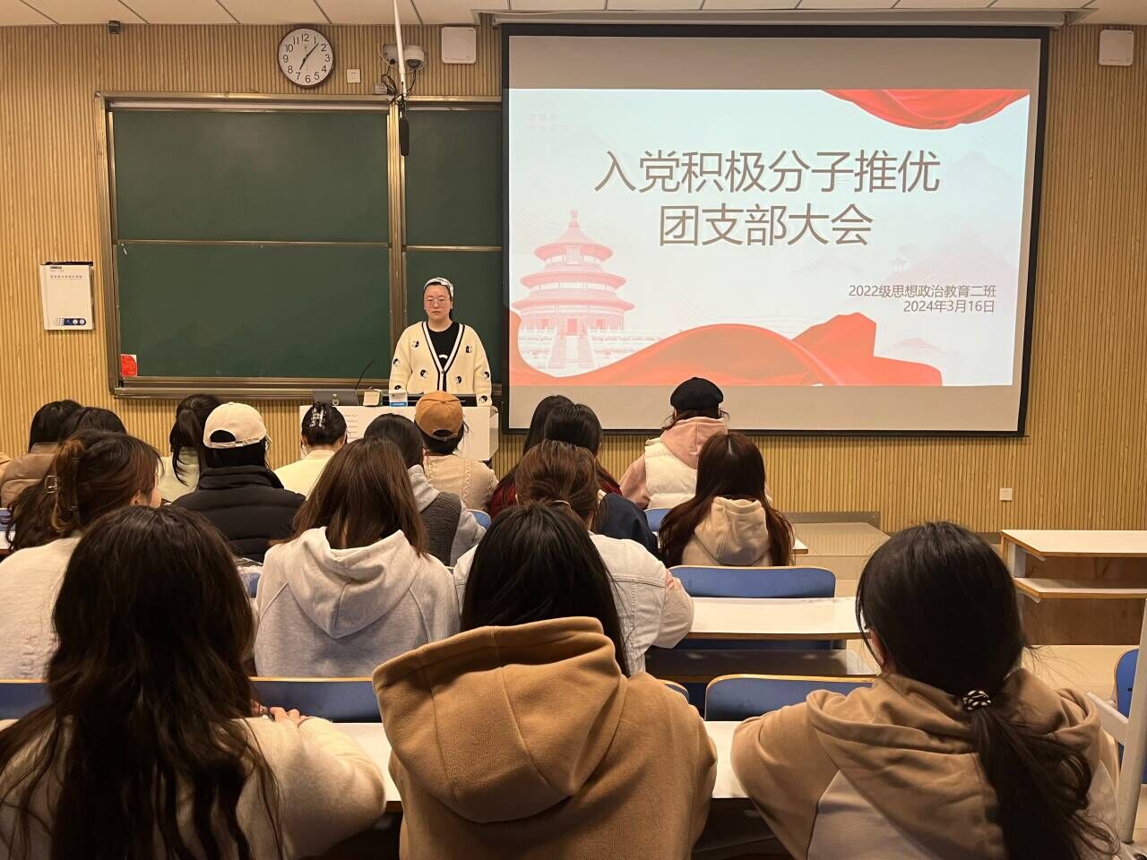 3月16日晚上,小说狂人 2022级思想政治教育二班在社科楼515教室召开入党积极分子推优团支部大会。小说狂人 2022级思想政治教育二班全体团员共同参与此次大会。会议由团支书李佳音主持。