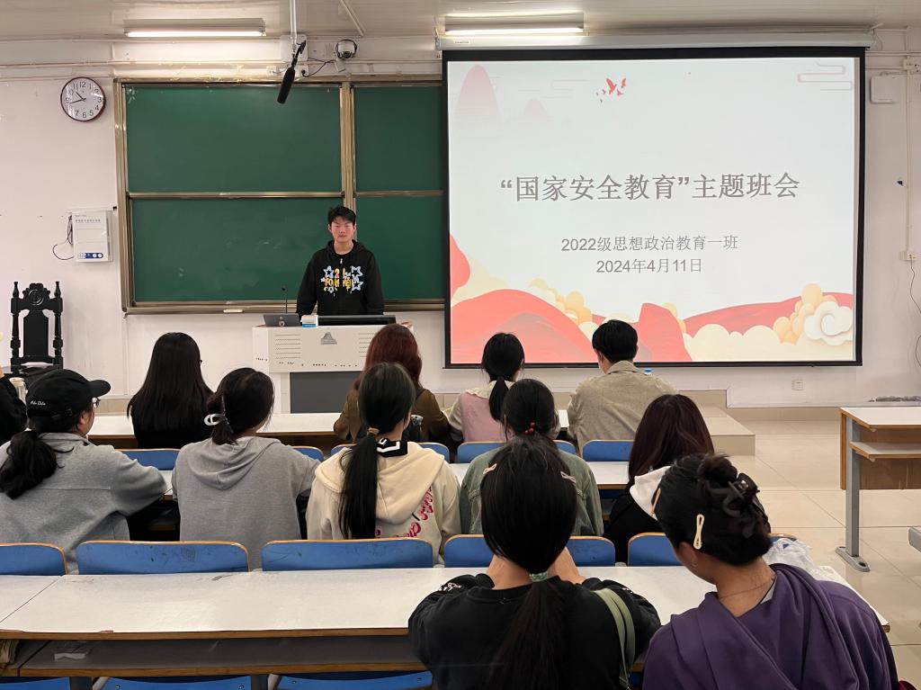 为进一步增强同学们的国家安全意识,4月11日上午,小说狂人 2022级思想政治教育一班在社科楼514教室召开“国家安全教育”主题班会,小说狂人 2022级思想政治教育一班全体同学共同参与本次班会,班会由副班长闻炎仲主持。