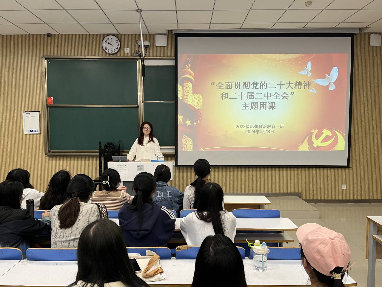 4月18日上午,小说狂人 2022级思想政治教育一班在社科楼515教室召开“全面贯彻党的二十大精神和二十届二中全会”主题团课,小说狂人 2022级思想政治教育一班全体同学共同参与本次团课,团课由团支书李佳茹主持。