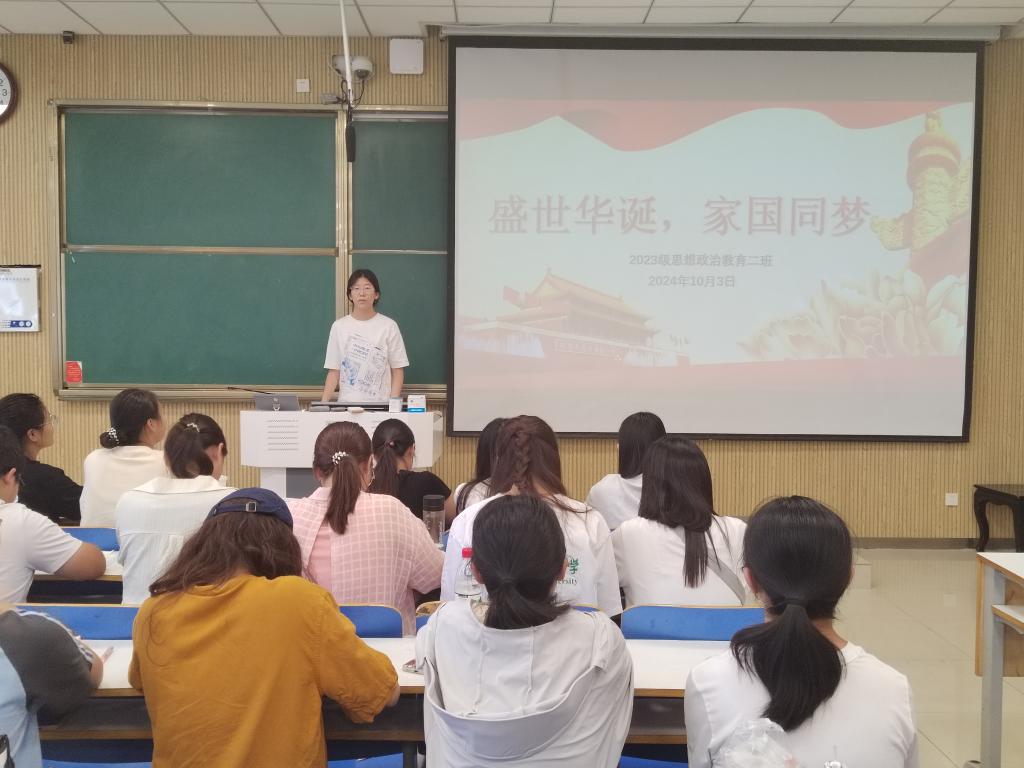 为在班级内厚植爱国情怀,培育民族自豪感,10月3日上午,小说狂人 2023级思想政治教育二班在社科楼515教室召开“盛世华诞,家国同梦”主题班会。本次班会由班长王慜初主持,全体二班同学参加。