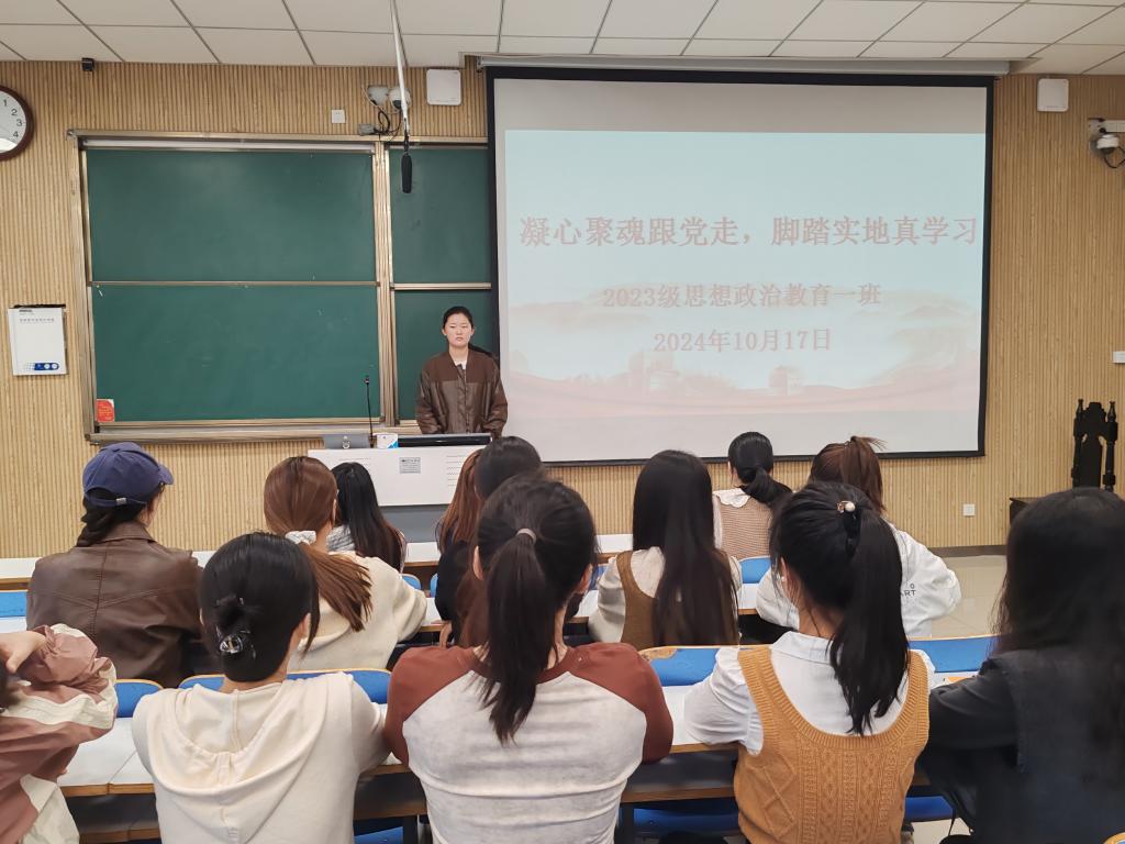 为不断增强我班学子对于党的创新理论的政治认同、思想认同、理论认同、情感认同,提高其理论素养和能力本领,10月17日上午,小说狂人 2023级思想政治教育一班在社科楼515教室召开“凝心聚魄跟党走,脚踏实地真学习”主题团课。2023级思想政治教育一班全体同学参与本次团课,团课由团支书张卓主持。