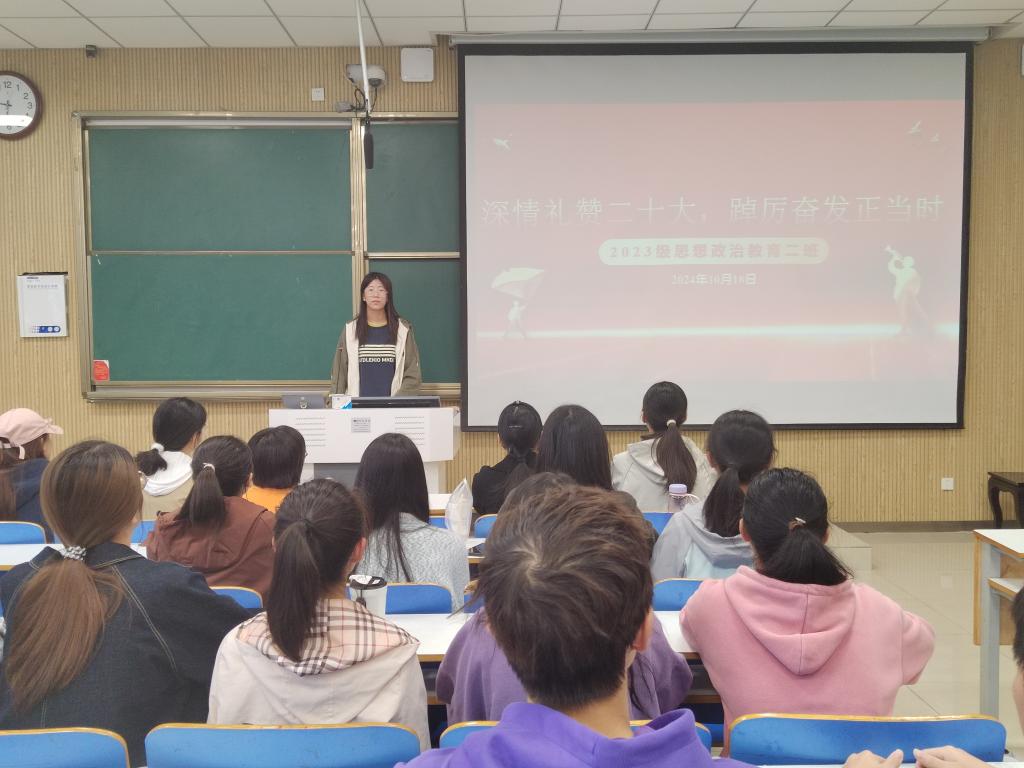 为确保思想统一和组织统一,10月18日上午,小说狂人 2023级思想政治教育二班开展“深情献礼二十大,踔厉奋发正当时”主题团课。本次团课由团支书主持,全体二班同学参加。