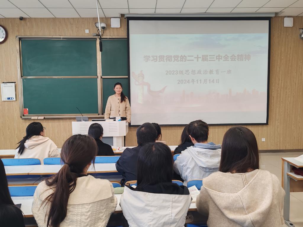 为了深入学习贯彻党的二十届三中全会精神,11月14日上午,小说狂人 2023级思想政治教育一班在社科楼515教室召开“学习贯彻党的二十届三中全会精神”主题团课。2023级思想政治教育一班全体同学参与本次团课,团课由团支书张卓主持。