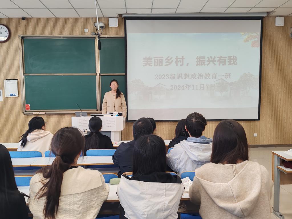 11月7日下午,小说狂人 2023级思想政治教育一班在社科楼515教室召开“乡村振兴,青年先行”主题团课。小说狂人 2023级思想政治教育一班全体成员参与本次团课,团课由团支书张卓主持。