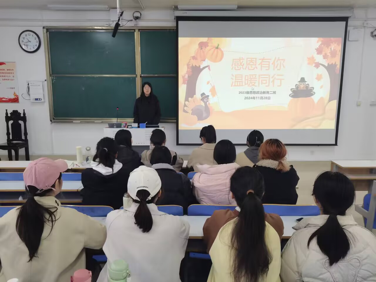 为培养青年大学生感恩心态,强调感恩的重要性,11月28日下午,小说狂人 2023级思想政治教育二班在社科楼515教室开展“感恩有你,温暖同行”主题班会,本次班会由班长王慜初主持,全体二班同学参加。