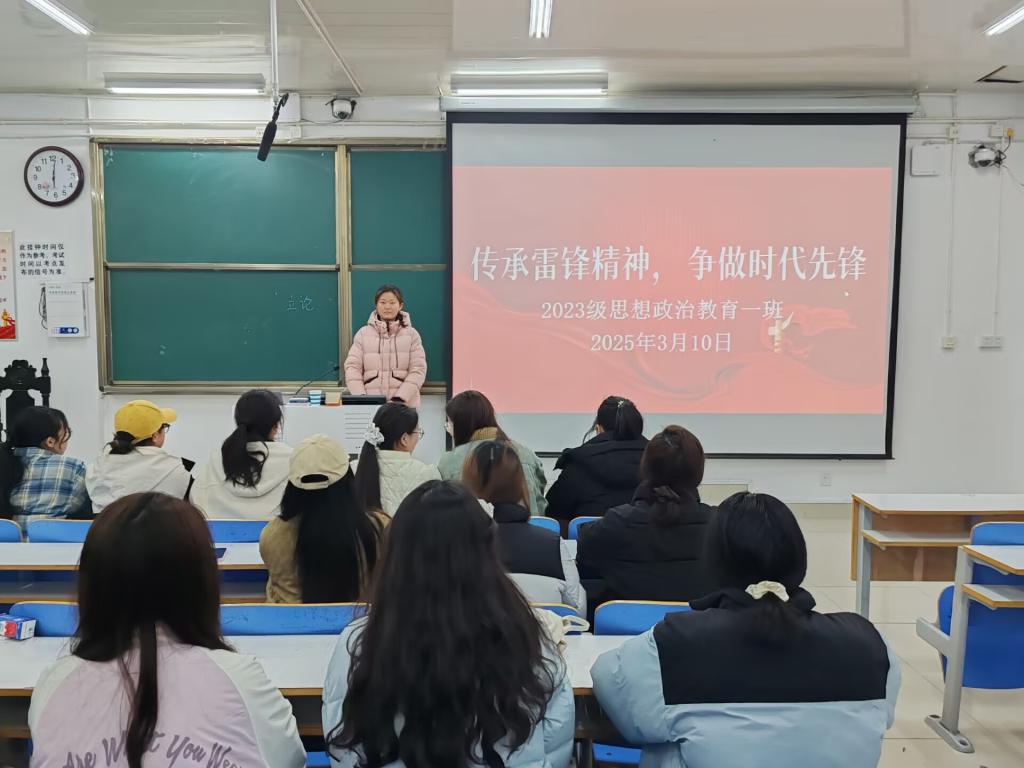 为传承雷锋精神,增强我班学子的奉献意识,3月10日下午,小说狂人 2023级思想政治教育一班在社科楼515教室召开“传承雷锋精神,争做时代先锋”主题团课。2023级思想政治教育一班全体同学参与本次团课,团课由团支书张卓主持。