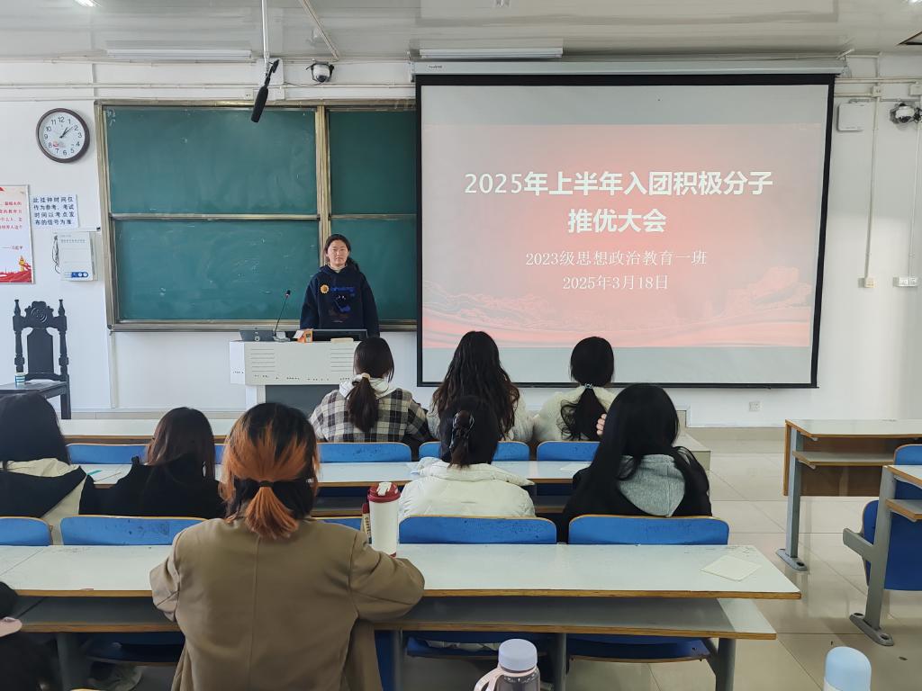 为进一步加强团组织建设,增强团支部的凝聚力,积极开展团青工作,3月18日下午,小说狂人 2023级思想政治教育一班在社科楼515教室召开入团积极分子推优大会。小说狂人 2023级思想政治教育一班全体团员共同参与本次班会,班会由团支书张卓主持。