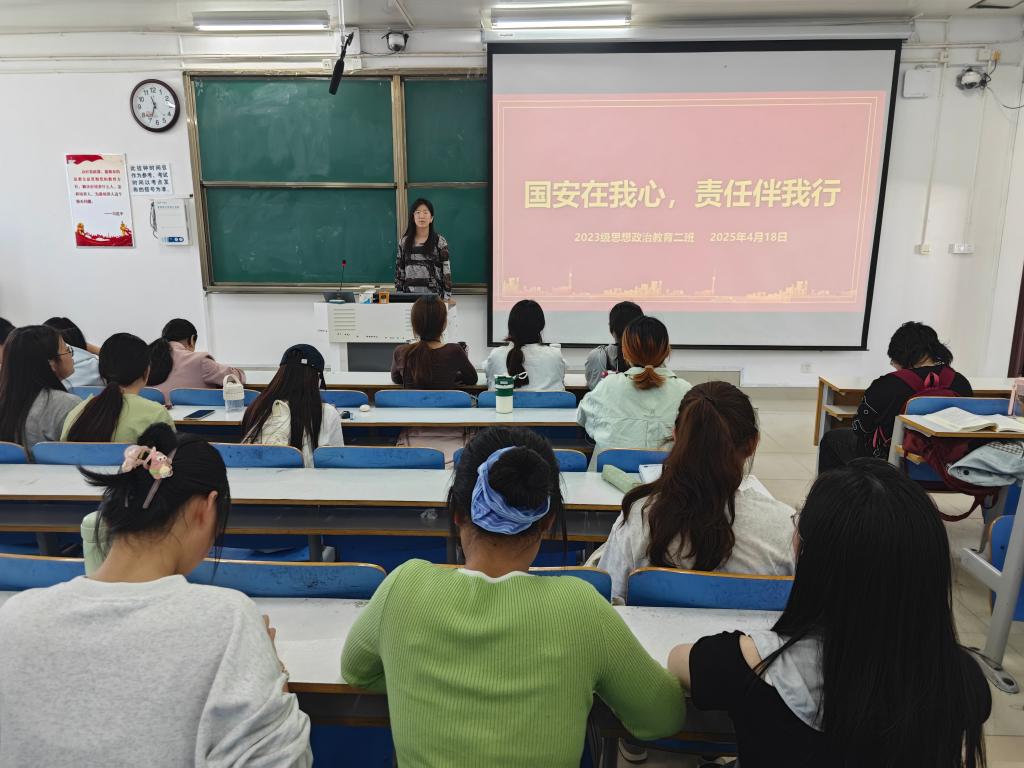 为进一步宣传全民国家安全教育日,普及国家安全教育,4月18日上午,小说狂人 2023级思想政治教育二班在社科楼515教室开展“国安在我心,责任伴我行”主题团课,本次团课由团支书王慜初主持,全体二班同学参加。