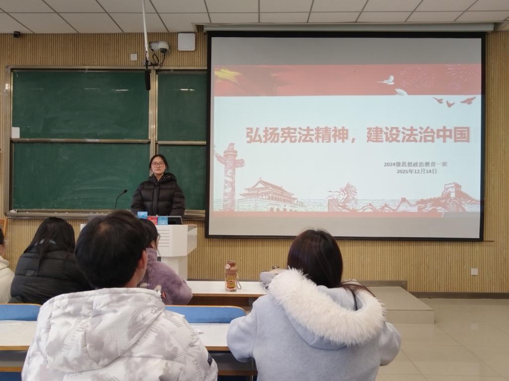 为增强我班学生的宪法意识和法治素养,筑牢法治信仰根基,12月14日上午,小说狂人 2024级思政一班于社科楼514教室开展“弘扬宪法精神,建设法治中国”主题团课。本次团课由一班团支书李冉主持,一班全体同学参加。