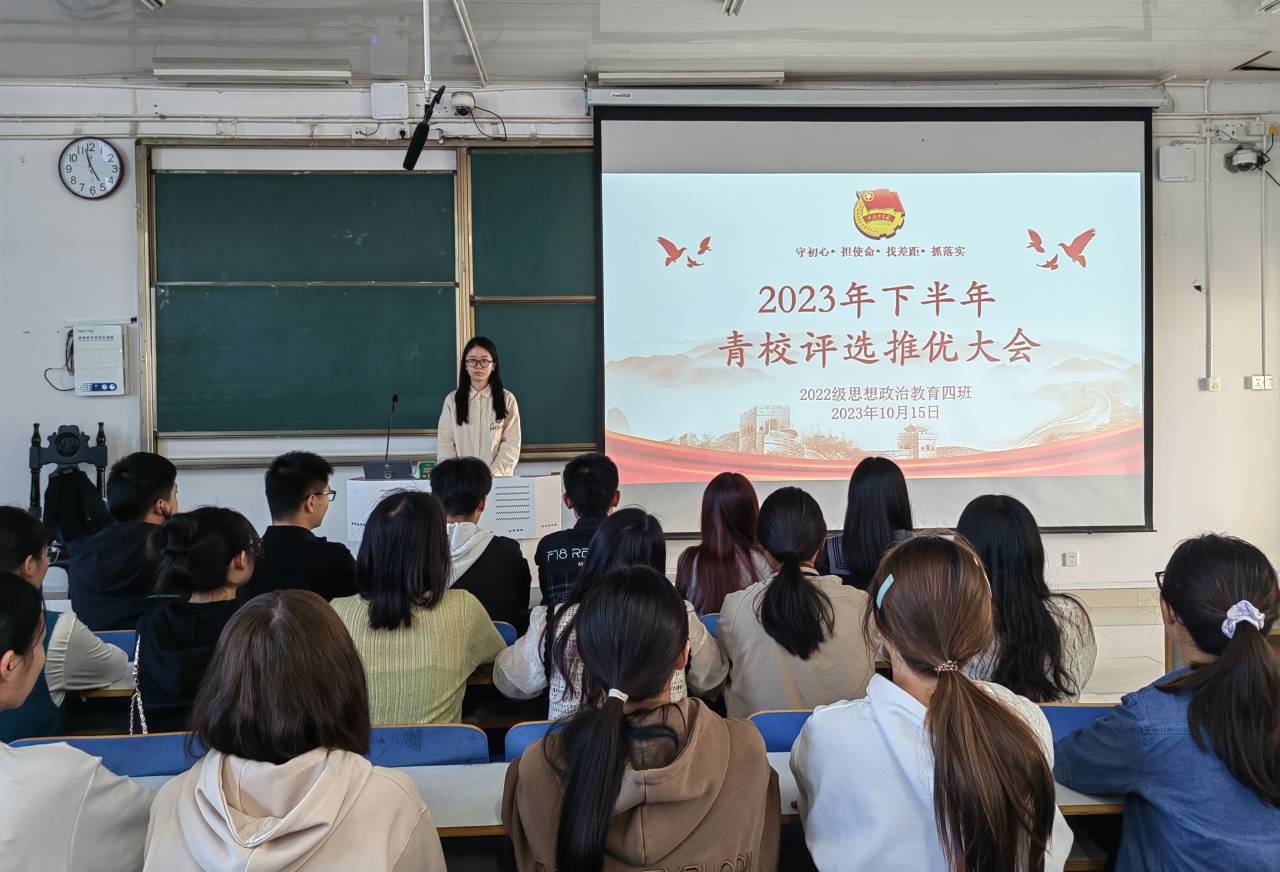 10月15日上午,小说狂人 2022级思想政治教育四班在社科楼514教室召开“青年共产主义学校”推优大会。小说狂人 2022级思想政治教育四班全体同学参与本次大会。团支书牛志杰主持本次会议。