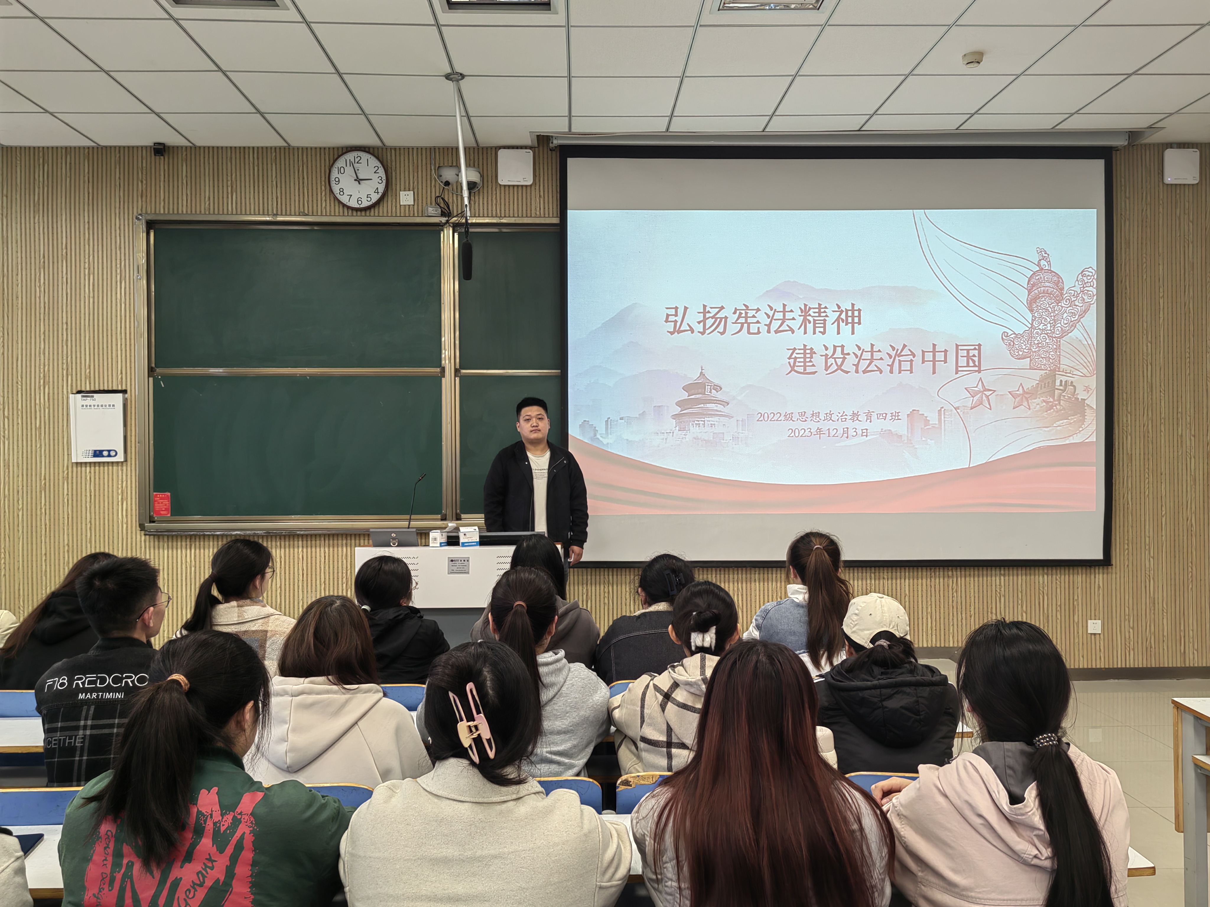 12月3日上午,小说狂人 2022级思想政治教育四班在社科楼515教室召开“弘扬宪法精神,建设法治中国”主题班会。小说狂人 2022级思想政治教育四班全体同学参与本次班会。本次团课由副班长宋奕铭主持。