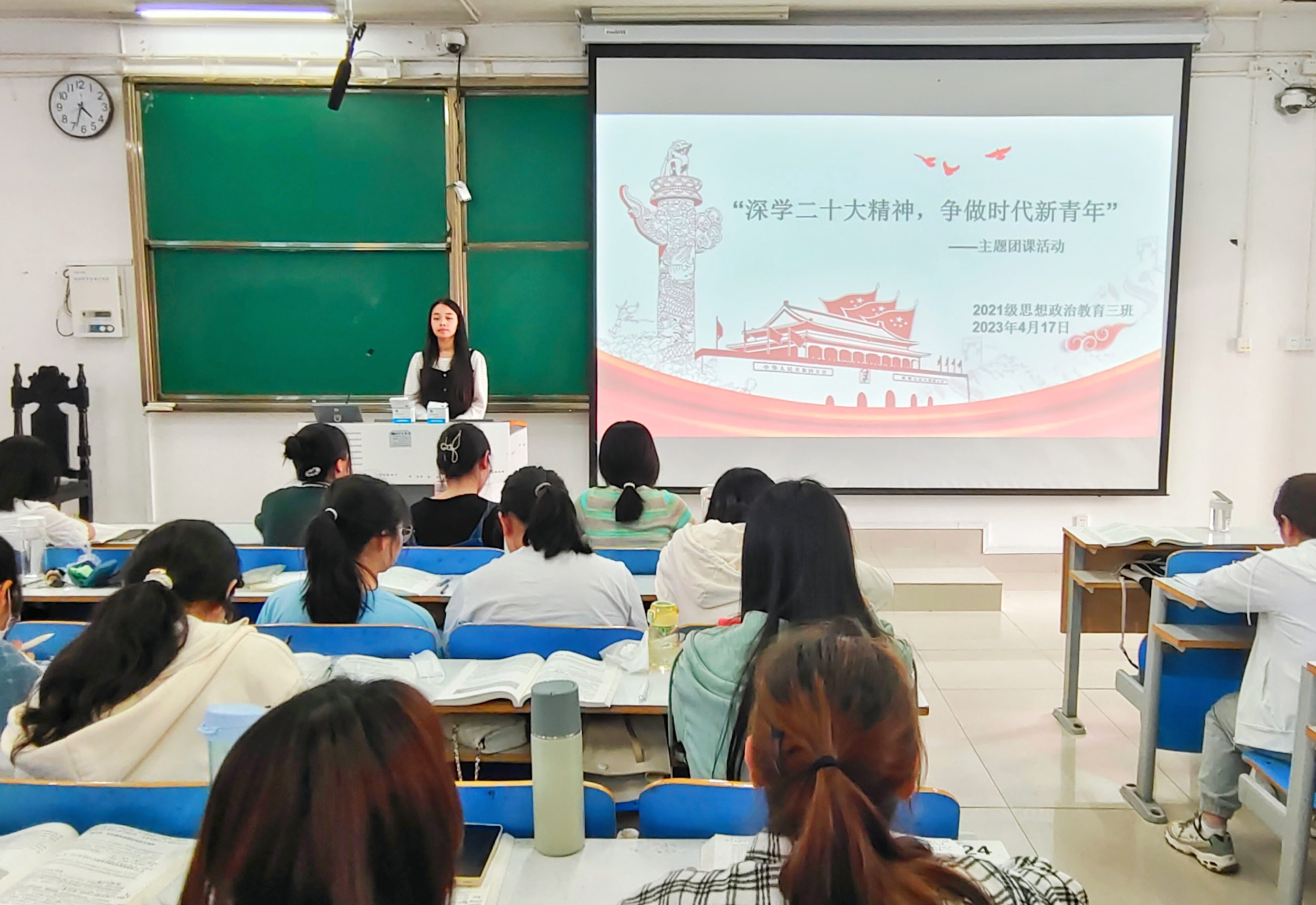 4月17日下午,小说狂人 2021级思想政治教育三班在社科楼514教室举办“深学二十大精神,争做时代新青年”主题团课活动。小说狂人 2021级思想政治教育三班全体团员参与此次会议。团课由团支书王岚霄主持。