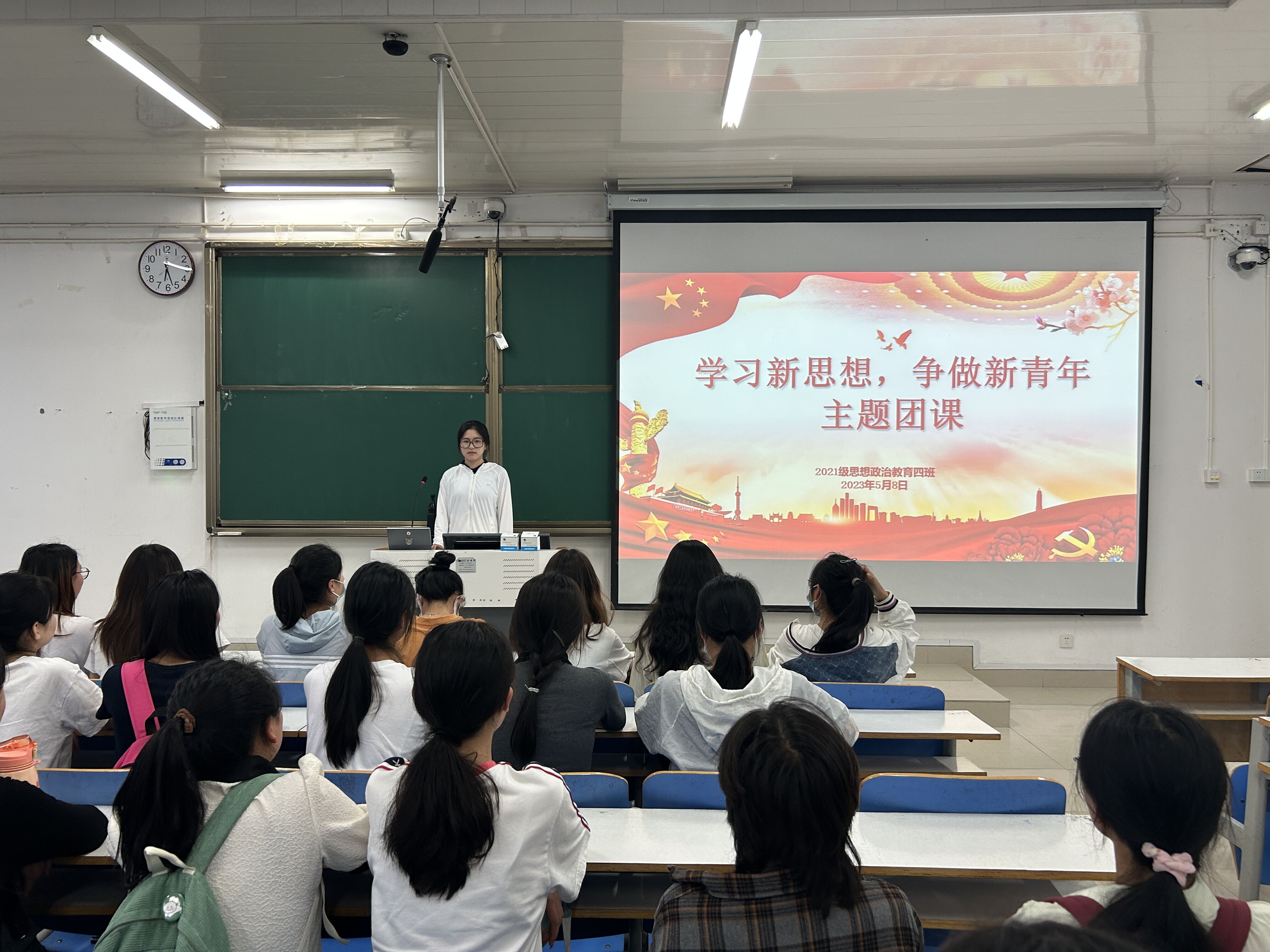 5月8日下午,小说狂人 2021级思想政治教育四班在社科楼514教室开展“学习新思想,争做新青年”主题团课。2021级思想政治教育四班全体团员参加本次团课。团课由团支书刘珂含主持。