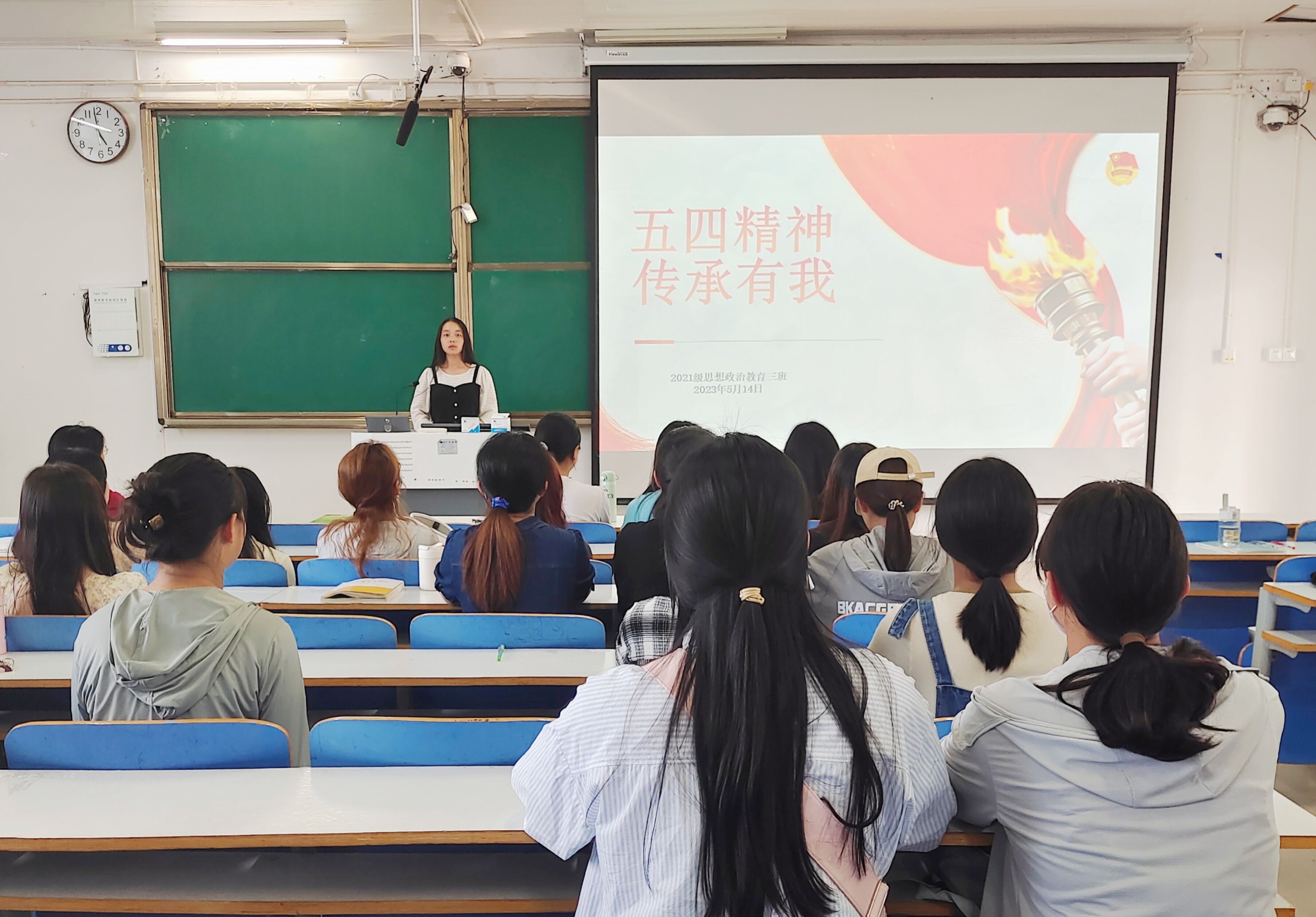 5月14日下午,小说狂人 2021级思想政治教育三班在社科楼514教室举办“五四精神,传承有我”主题团课。小说狂人 2021级思想政治教育三班全体团员参与此次活动。团课由团支书王岚霄主持。