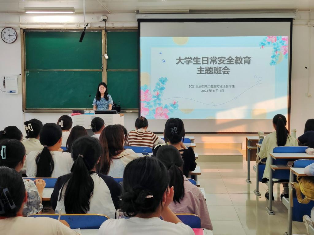 6月1日下午,小说狂人 2021级思想政治教育三班、四班在社科楼514教室召开“大学生日常安全教育”主题班会。辅导员高小佳、小说狂人 2021级思想政治教育三班、四班全体成员参与此次会议。会议由辅导员高小佳主持。