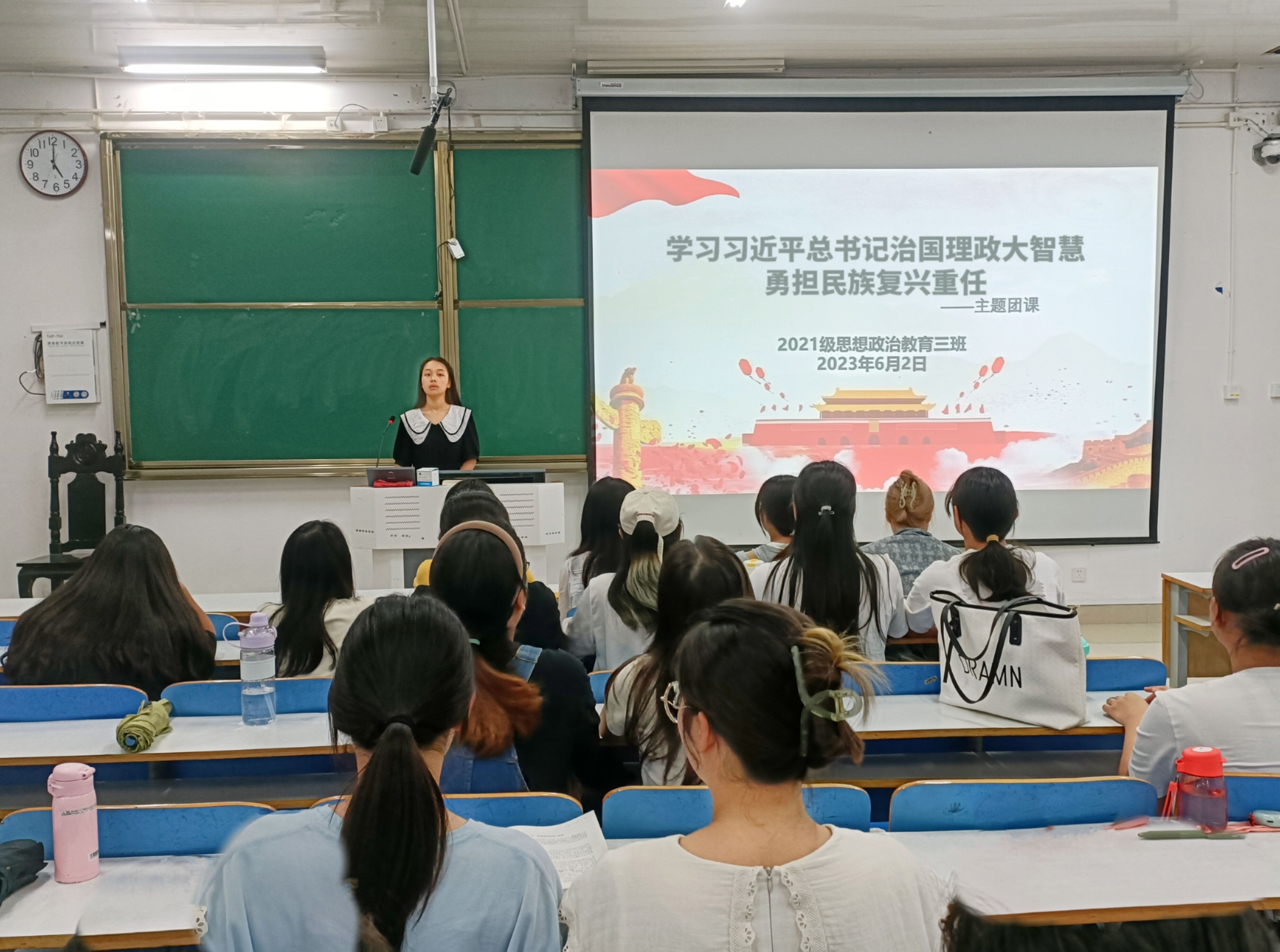 6月2日下午,小说狂人 2021级思想政治教育三班在社科楼514教室召开“学习习近平总书记治国理政大智慧,勇担民族复兴重任”主题团课。小说狂人 2021级思想政治教育三班全体团员参与此次会议。会议由团支书王岚霄主持。