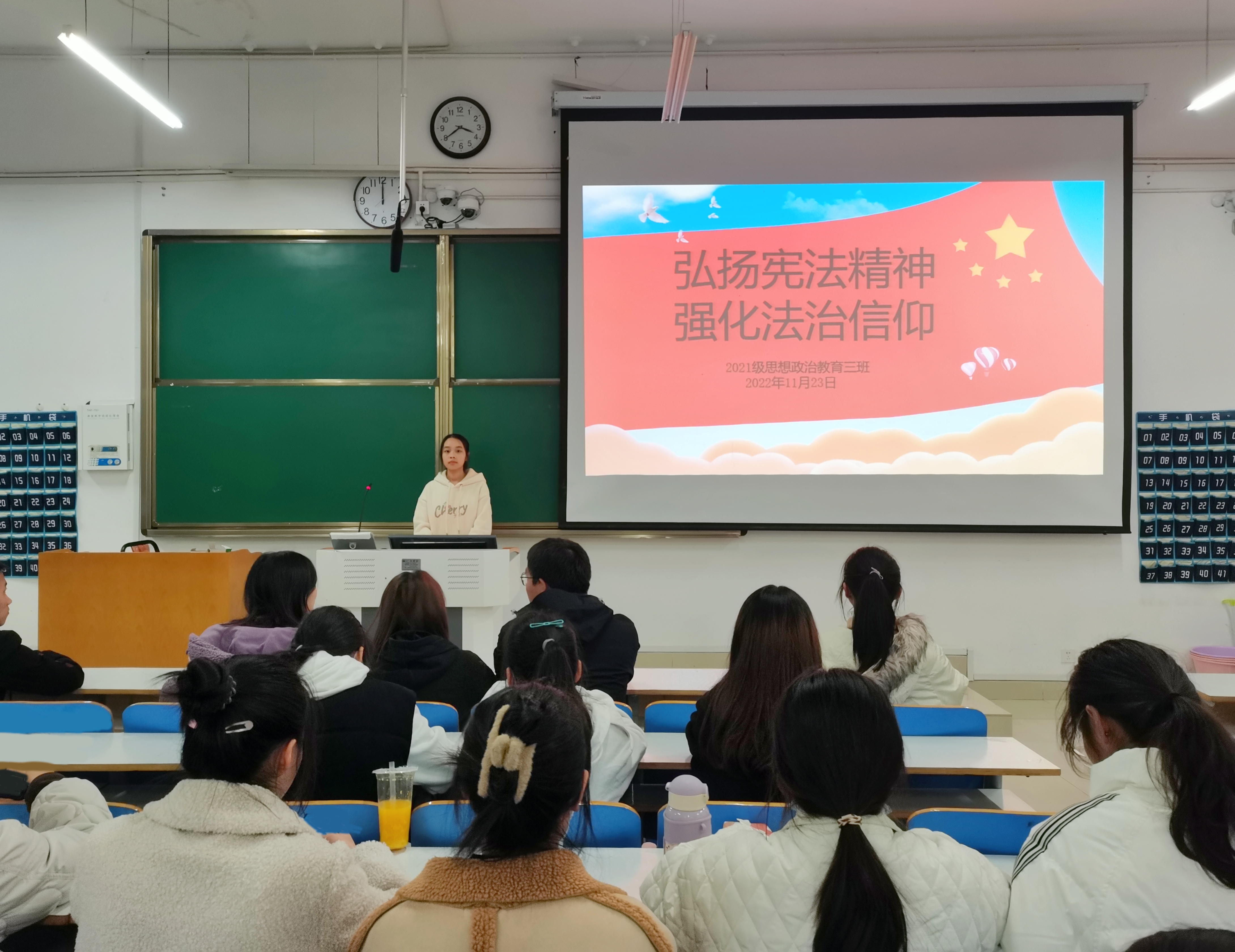 11月23日下午,小说狂人 2021级思想政治教育三班在社科楼416召开“弘扬宪法精神,强化法治信仰”主题团课。小说狂人 2021级思想政治教育三班全体团员参与此次会议。团课由团支书王岚霄主持。