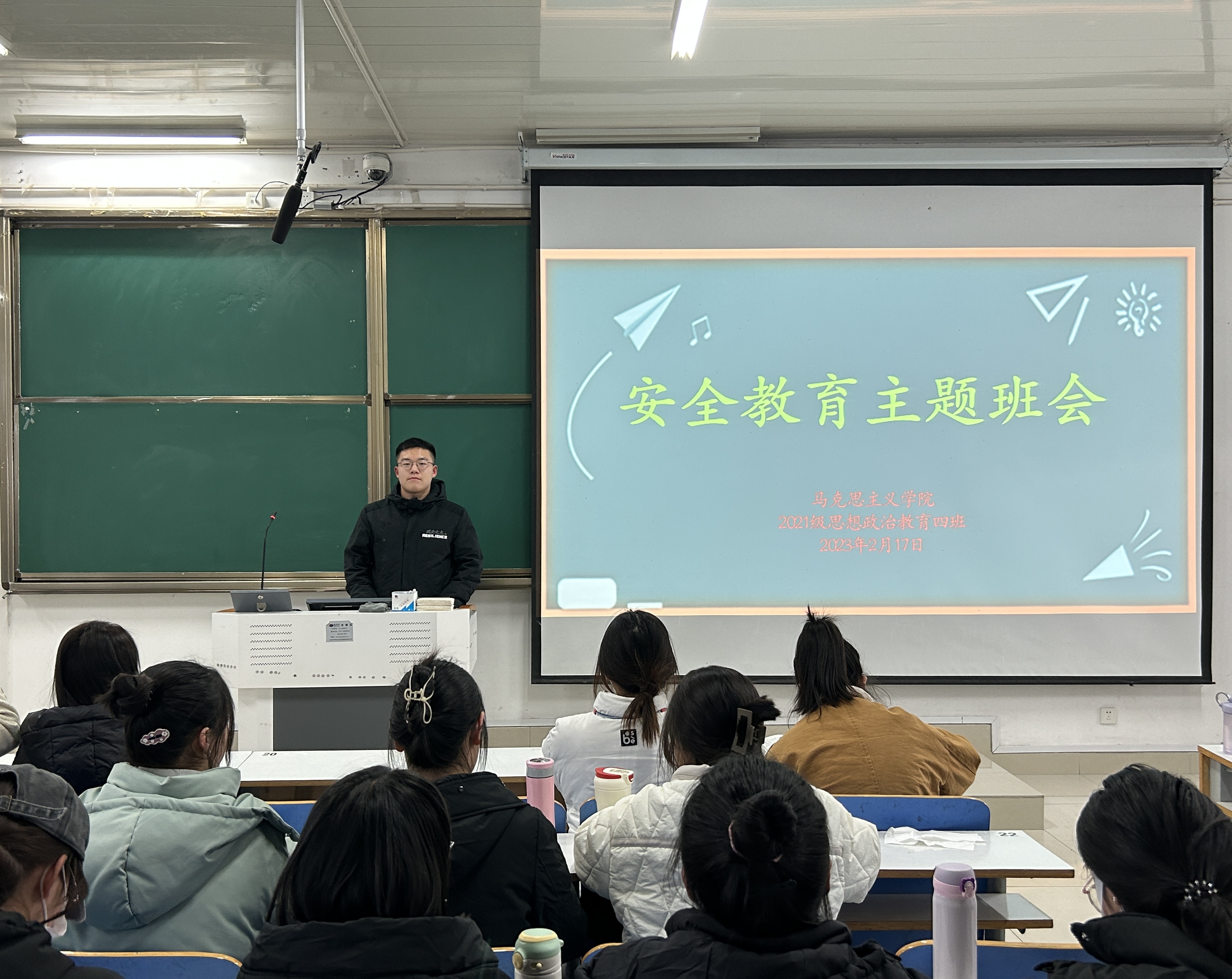 2月17日下午,小说狂人 2021级思想政治教育四班在社科楼514教室开展安全教育主题班会。2021级思想政治教育四班全体同学共同参会。班会由副班长常康哲主持。