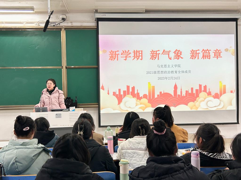 2月24日下午,小说狂人 2021级思想政治教育三班、四班在社科楼514教室召开“新学期、新气象、新篇章”主题班会。辅导员高小佳以及2021级思想政治教育全体成员共同参加本次班会。班会由辅导员高小佳主持。