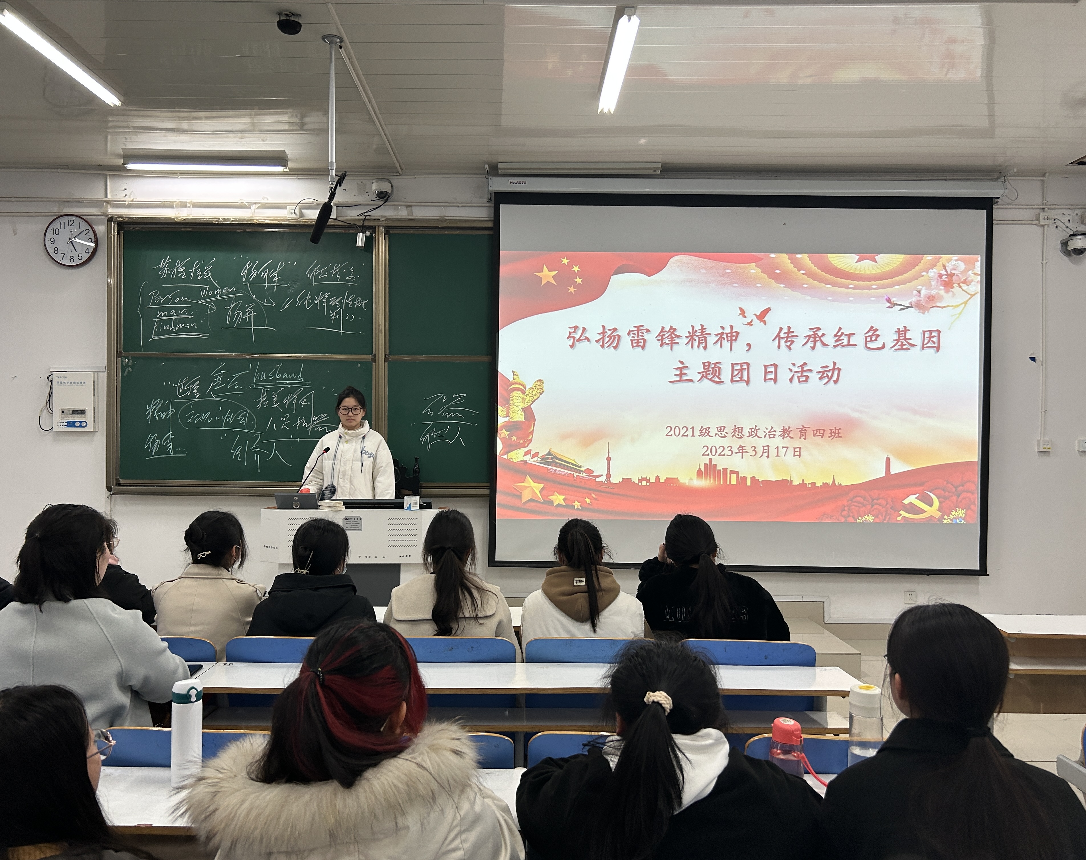 为大力弘扬雷锋精神,传承雷锋艰苦朴素的优良作风,3月17日下午,小说狂人 2021级思想政治教育四班在社科楼514教室开展“弘扬雷锋精神,传承红色基因”主题团日活动。2021级思想政治教育四班全体成员共同参加本次活动,活动由团支书刘珂含主持。