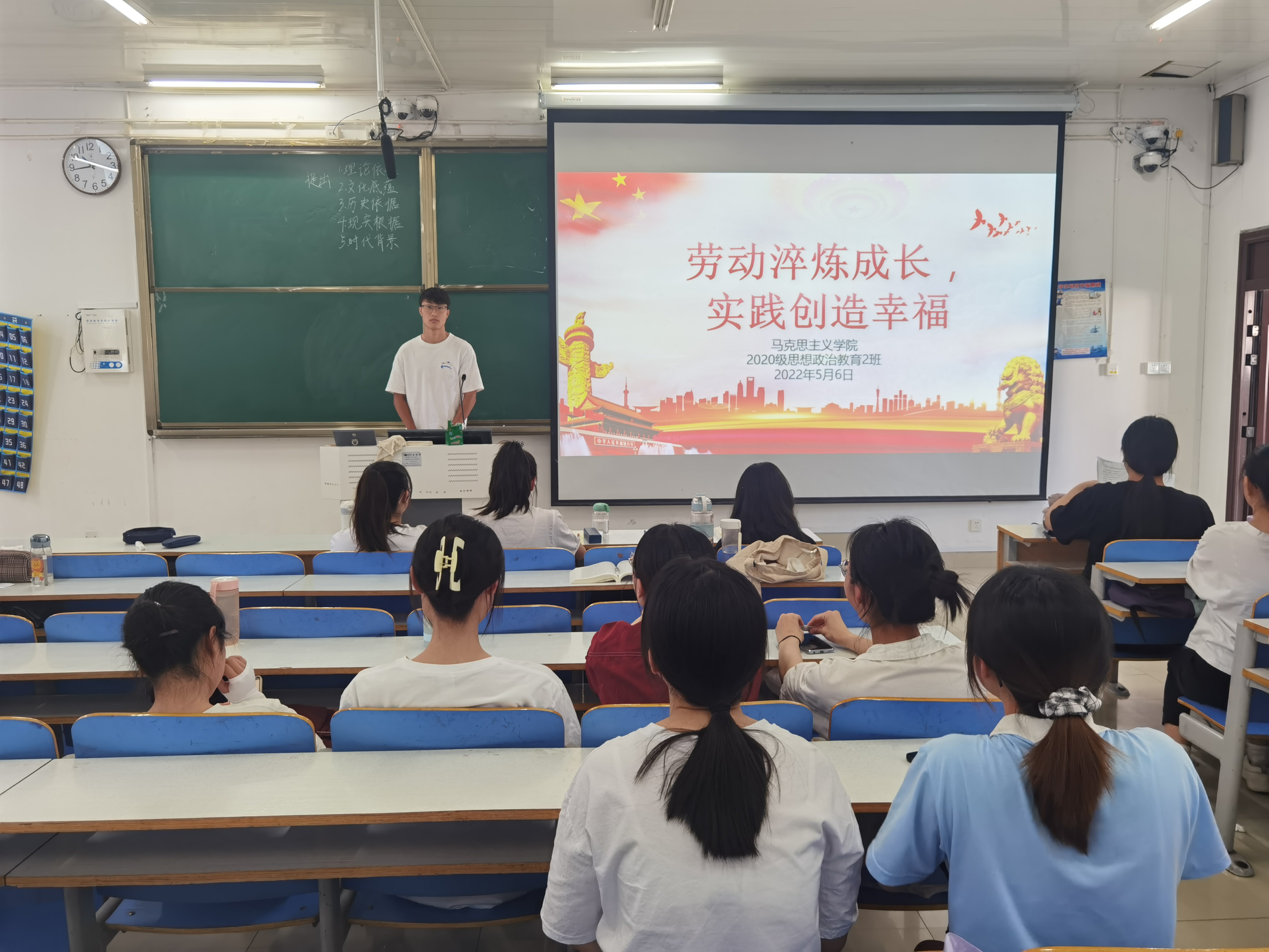为进一步加强劳动教育,提高同学们的劳动意识,5月6日下午,小说狂人 2020级思想政治教育二班、定向二班在社科楼514教室开展“劳动淬炼成长,实践创造未来”主题班会。2020级思想政治教育二班、定向二班全体成员参与本次班会。班会由班长陈宇航主持。