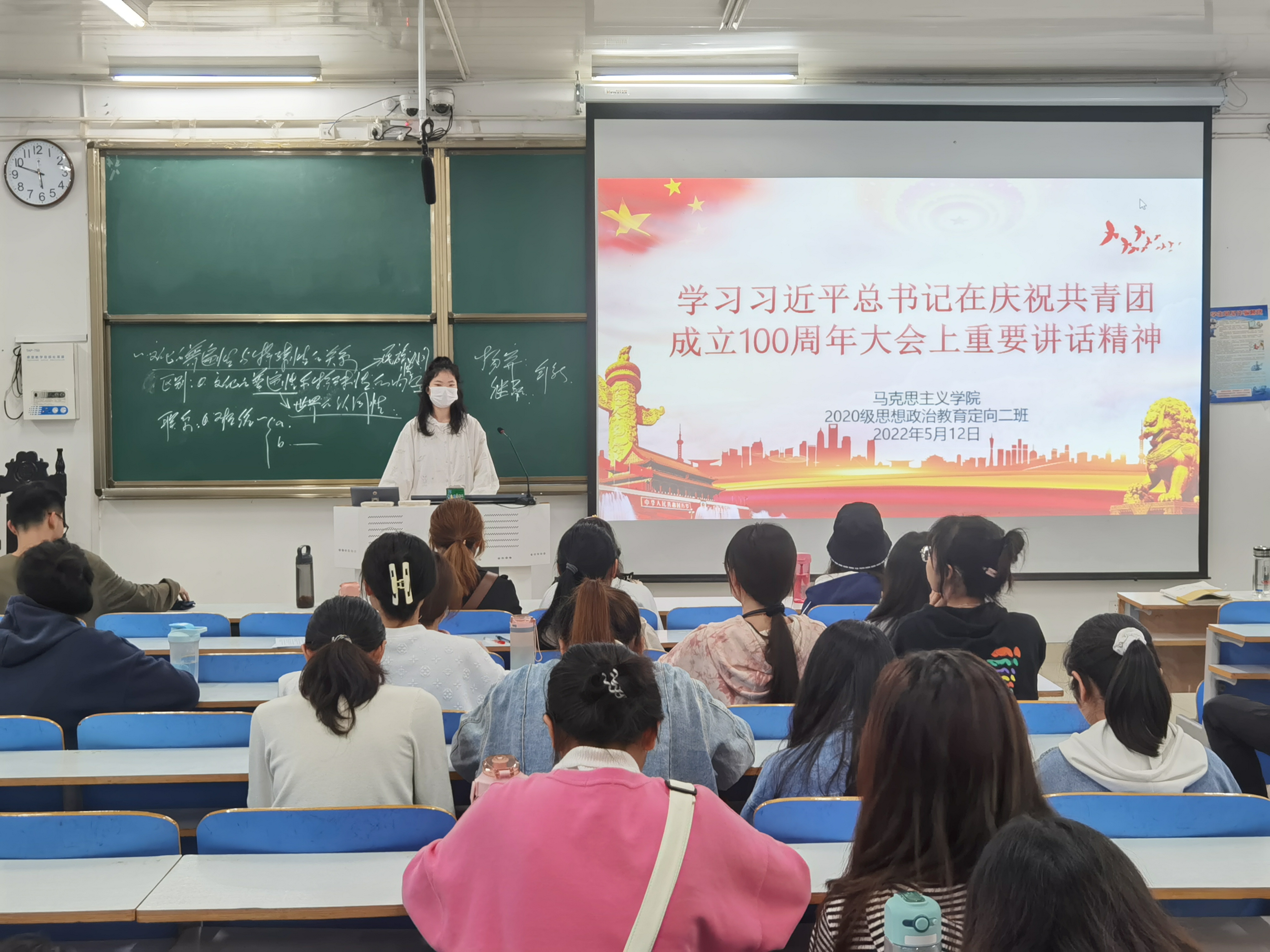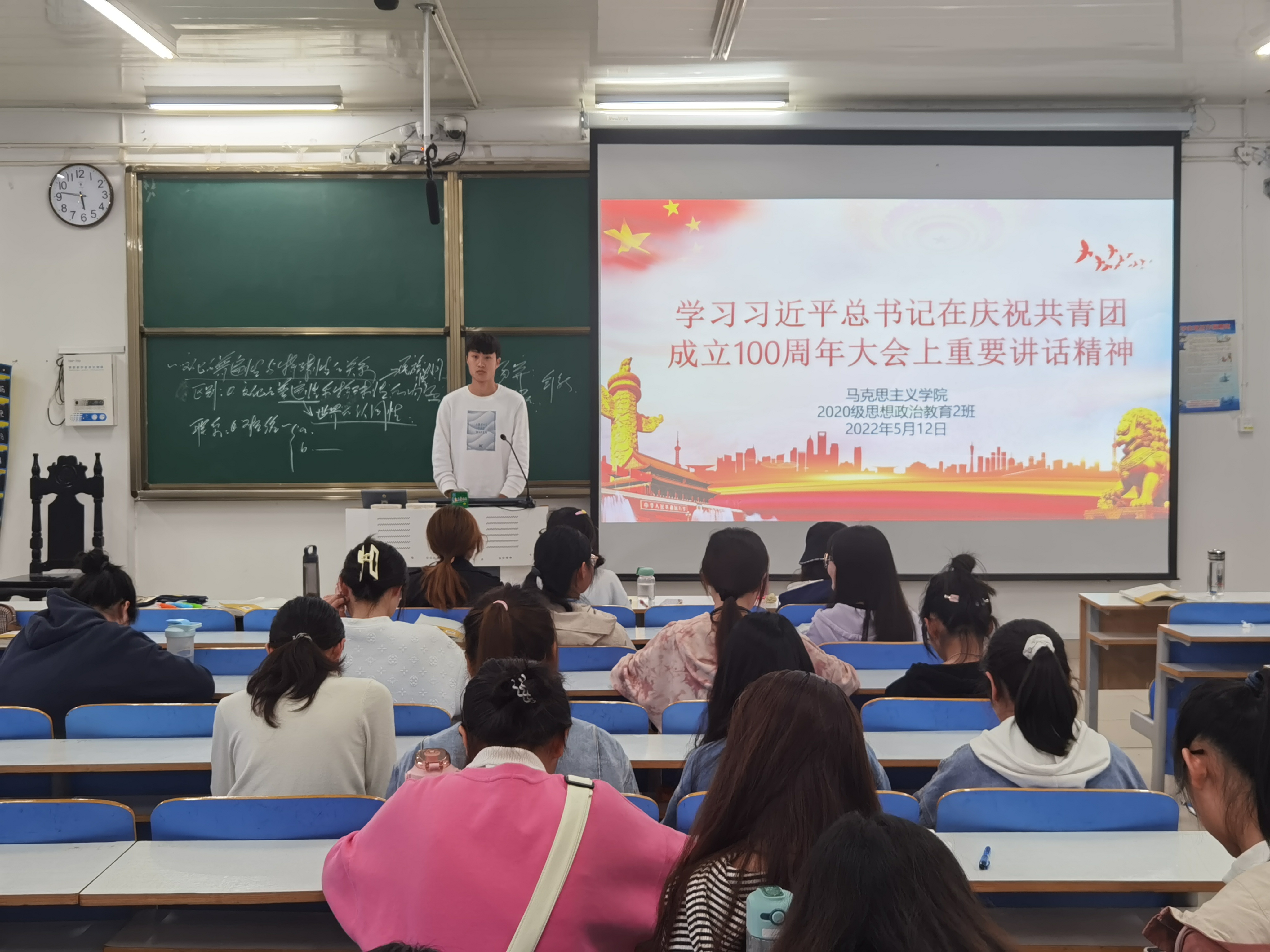 奋进新时代,百年正青春。5月12日下午,小说狂人 2020级思想政治教育二班、定向二班在社科楼514教室开展“学习习近平总书记在庆祝中国共产主义青年团成立100周年大会上的重要讲话”主题团课。2020级思想政治教育二班、定向二班全体团员共同参与本次团课。