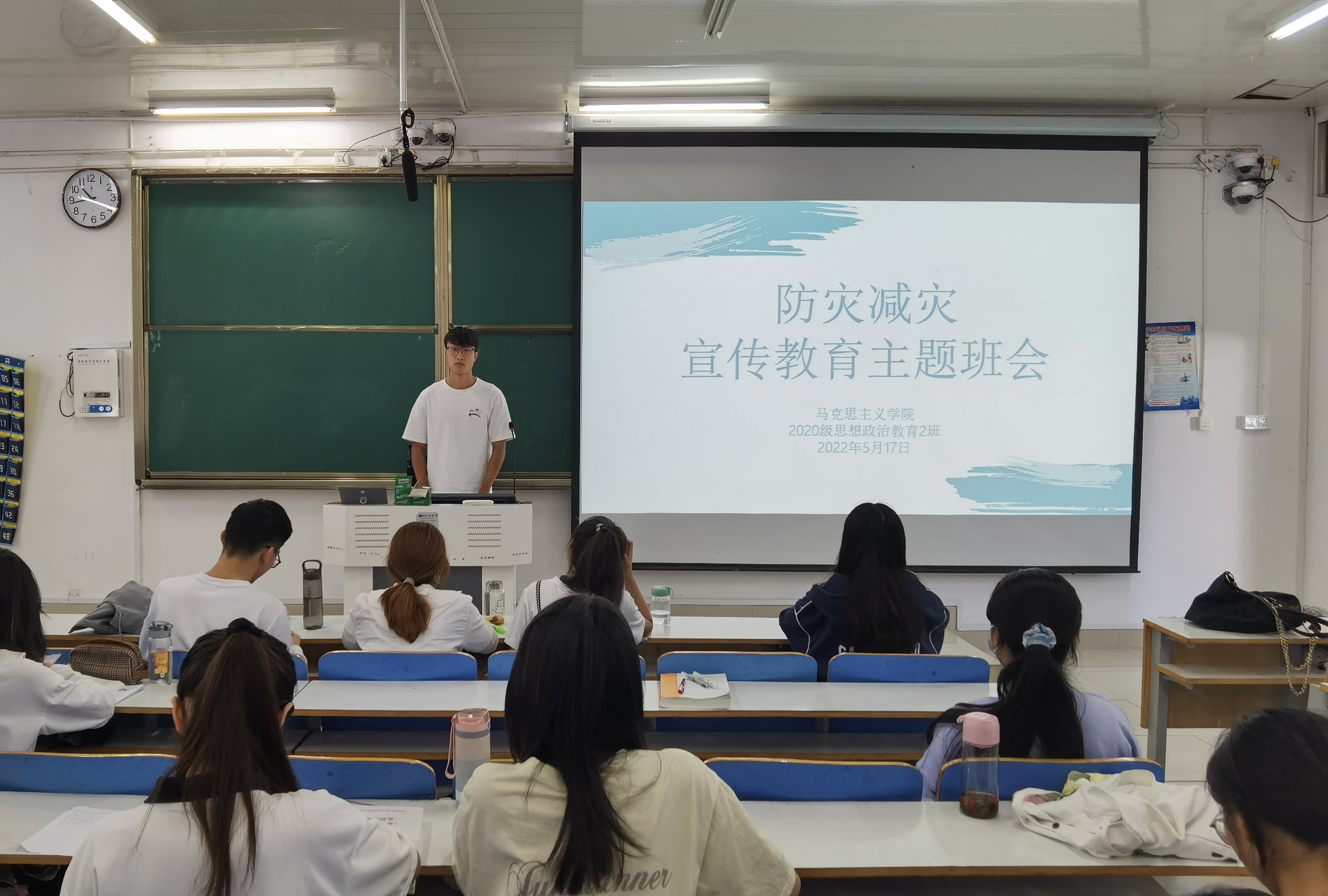 为加强学生安全教育,提高学生防灾减灾意识,5月17日上午,小说狂人 2020级思想政治教育二班、定向二班在社科楼514教室召开“防灾减灾”宣传教育主题班会。2020级思想政治教育二班、定向二班全体同学共同参与本次班会。班会由团支书陈宇航主持。