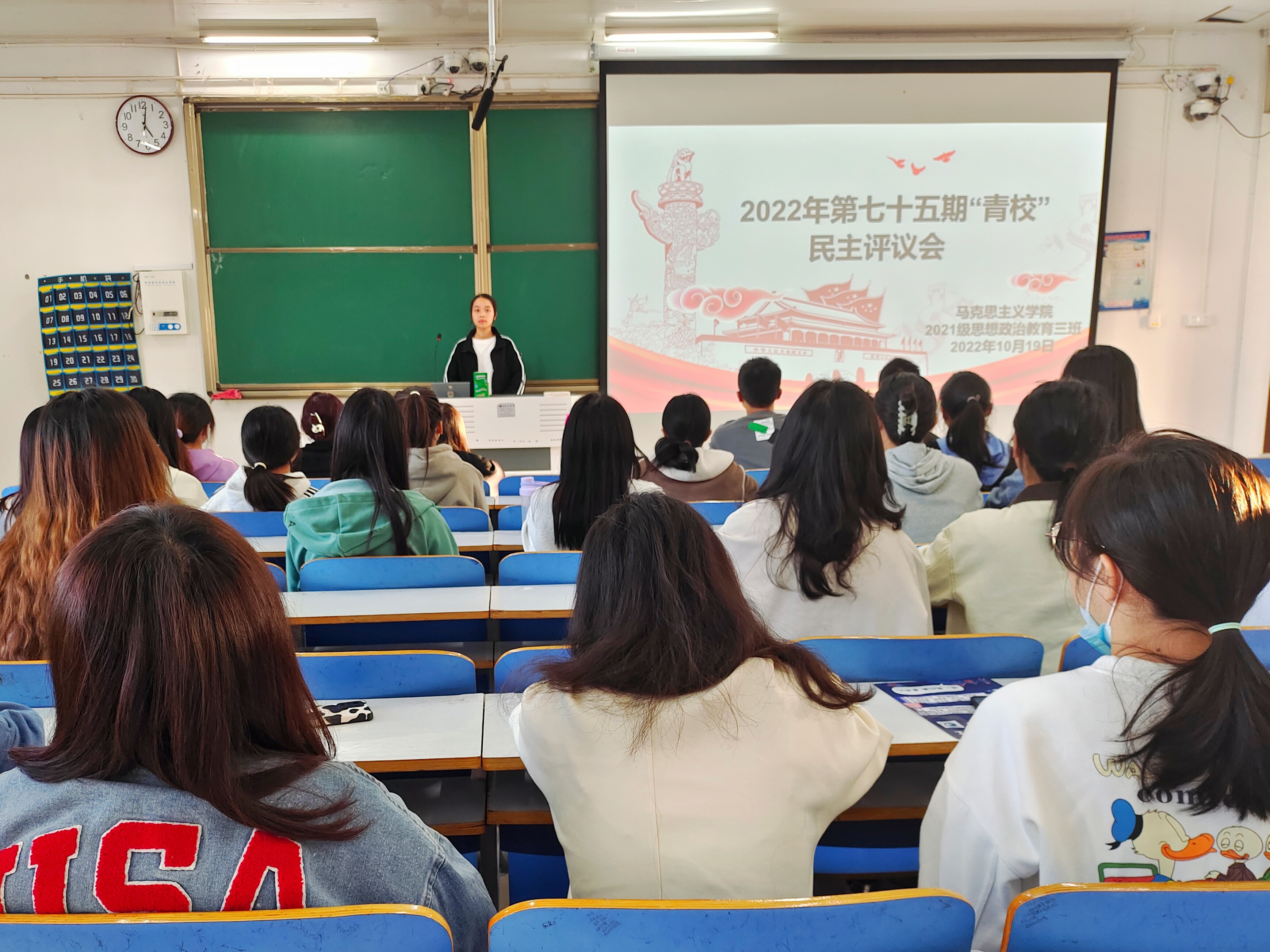 10月19日下午,小说狂人 2021级思想政治教育三班在社科楼514召开第七十五期“青校”成员推举团支部大会。小说狂人 2021级思想政治教育三班全体团员参与此次会议。会议由团支书王岚霄主持,秦梦莹担任监票员,陈笑宇担任记录员。