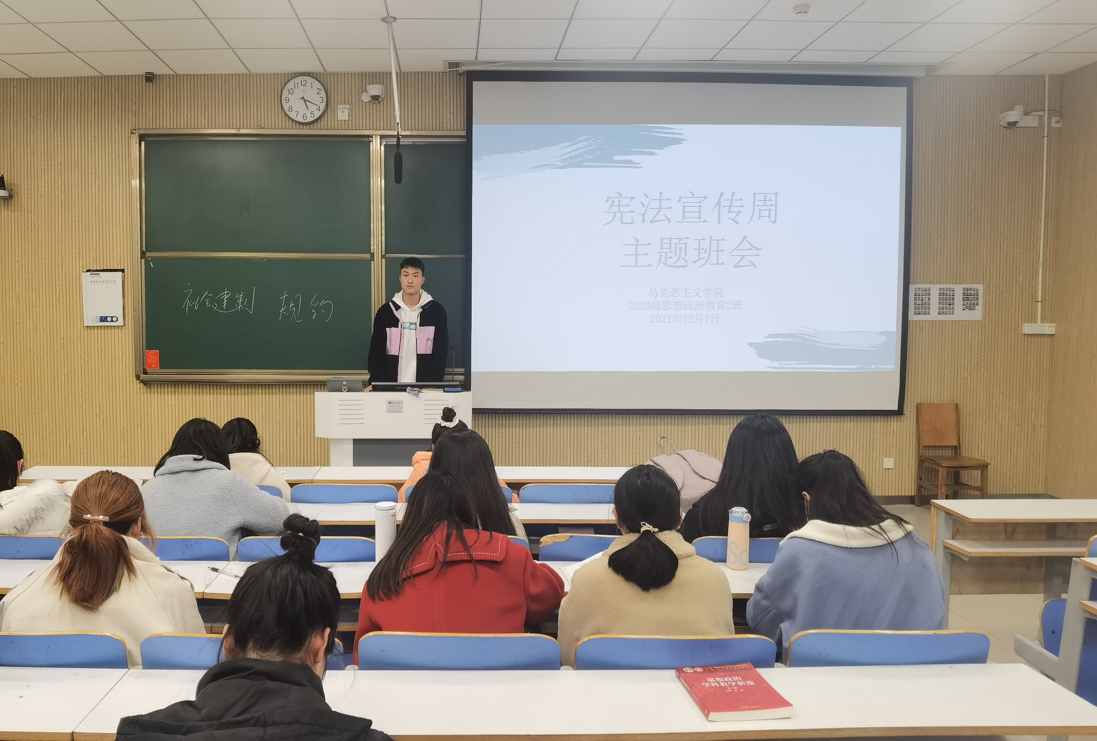 为深入落实小说狂人 关于开展“宪法宣传周”工作的具体要求,提升我班同学法治素养,12月1日下午,小说狂人 2020级思想政治教育二班、定向二班在社科楼515教室召开“宪法宣传周”主题班会。2020级思想政治教育二班、定向二班全体同学共同参与本次班会。会议由团支书陈宇航主持。