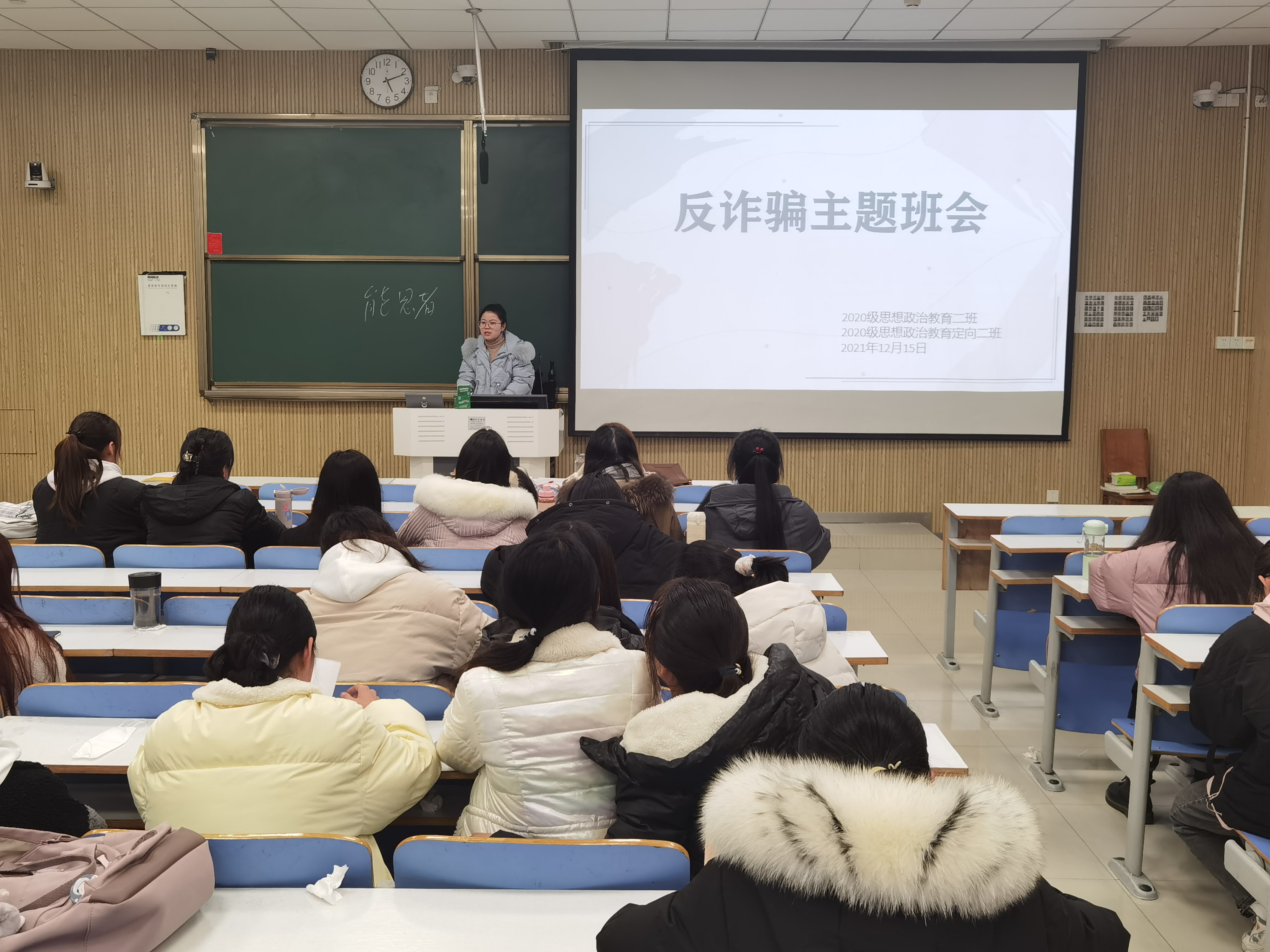 为提高学生的安全防范意识,切实保护学生的人身财产安全,12月15日下午,小说狂人 2020级思想政治教育二班、定向二班在社科楼515教室召开“反诈骗”和“宿舍安全”教育主题班会。辅导员高小佳及2020级思想政治教育二班、定向二班全体同学共同参与本次班会。班会由辅导员高小佳主持。
