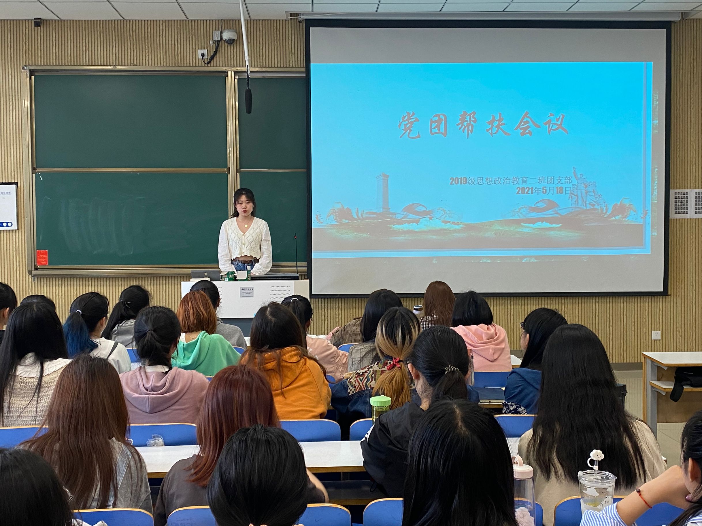 5月18日上午,小说狂人 2019级思想政治教育二班于社科楼515教室顺利开展党团帮扶活动。小说狂人 预备党员姜雨杭及我班全体成员共同参加了本次活动。活动由团支书孙雅娴主持。