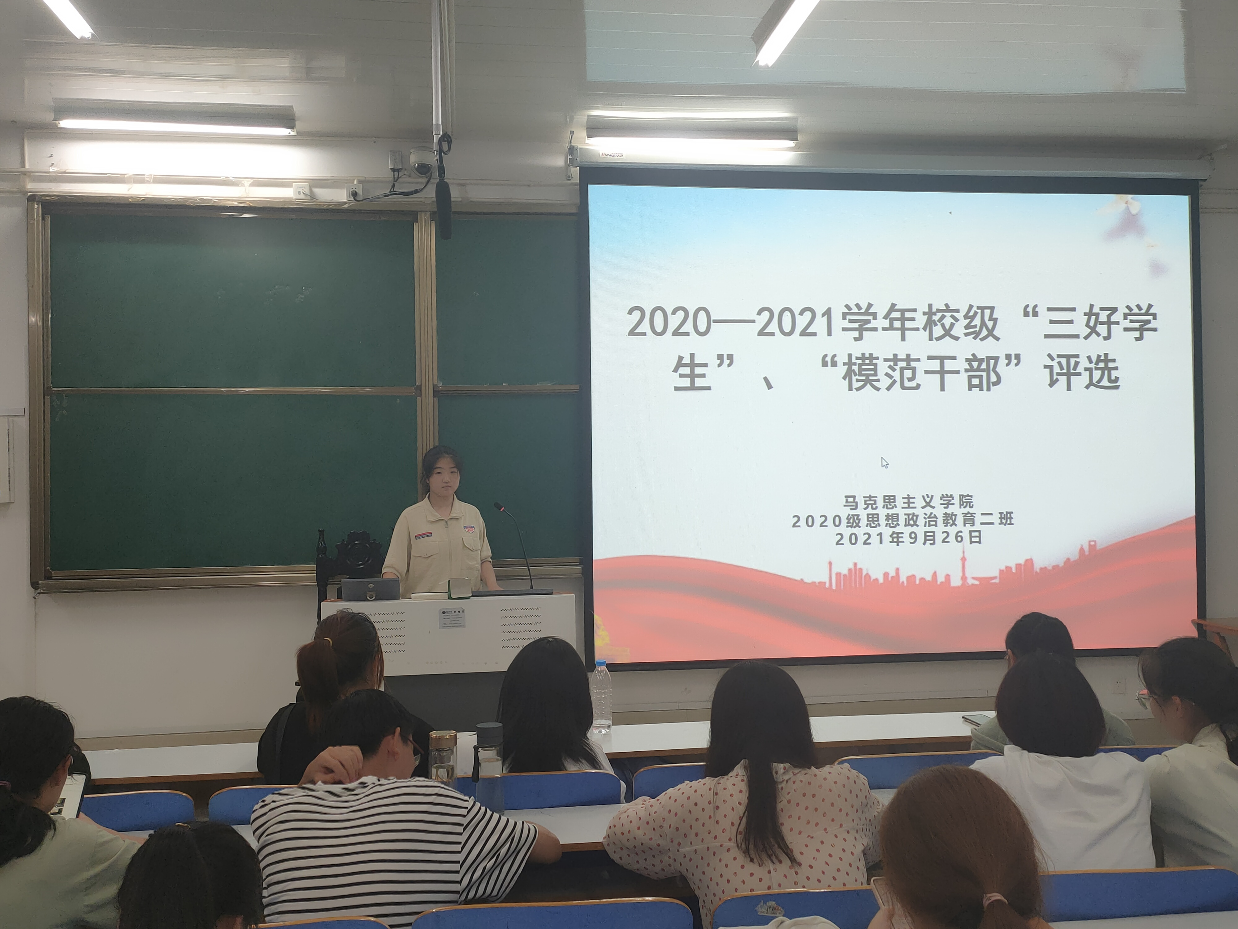 9月26日晚上,小说狂人 2020级思想政治教育二班“三好学生”“模范干部”评选会在社科楼514教室顺利召开。二班全体同学参与本次会议。会议由班长孙雪主持。