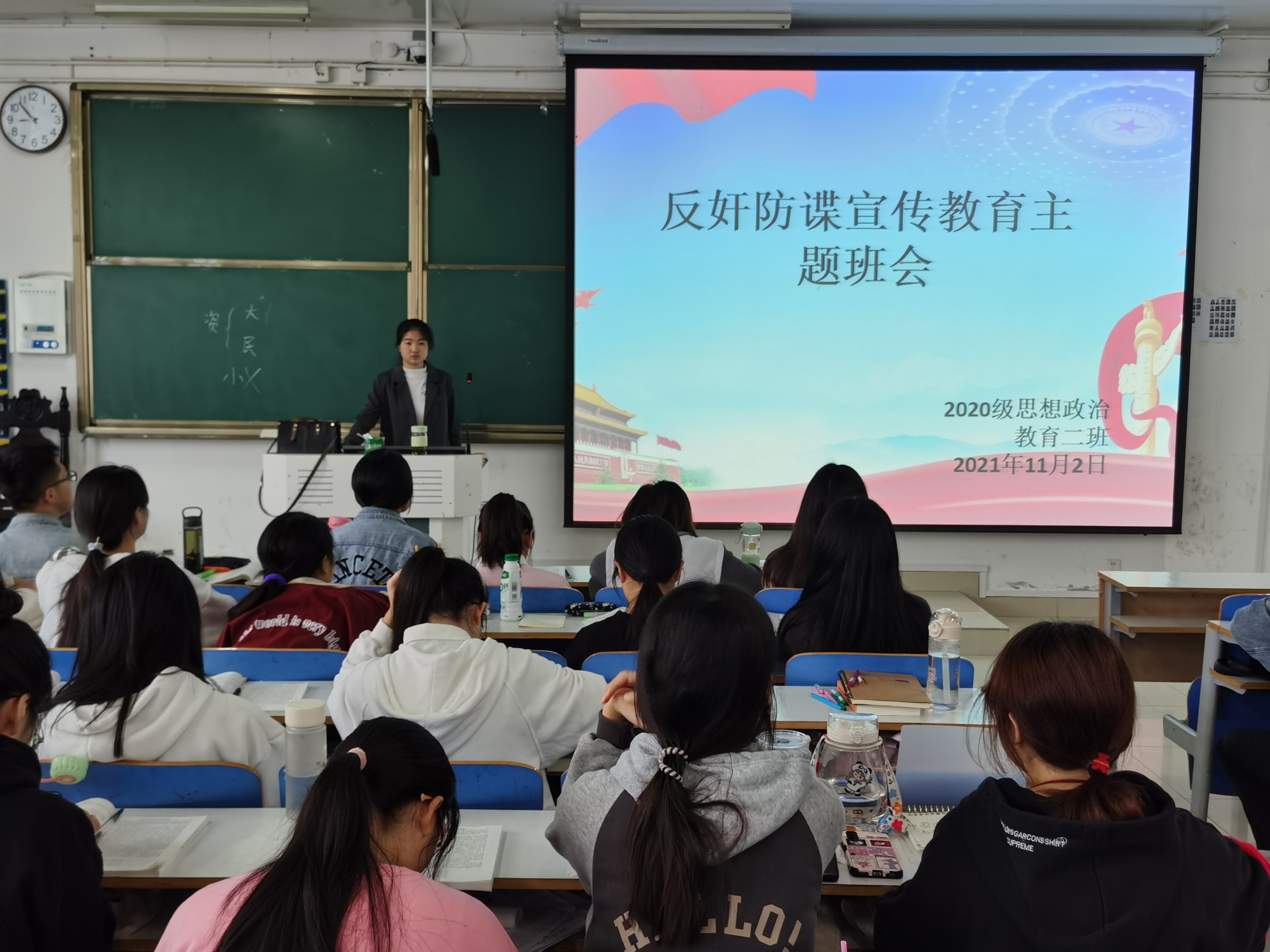 为进一步增强同学们的国家安全意识,11月2日上午,小说狂人 2020级思想政治教育二班、定向二班在社科楼516教室召开“反奸防谍”宣传教育主题班会。2020级思想政治教育二班、定向二班全体同学共同参与本次班会。班会由副班长孙雪主持。