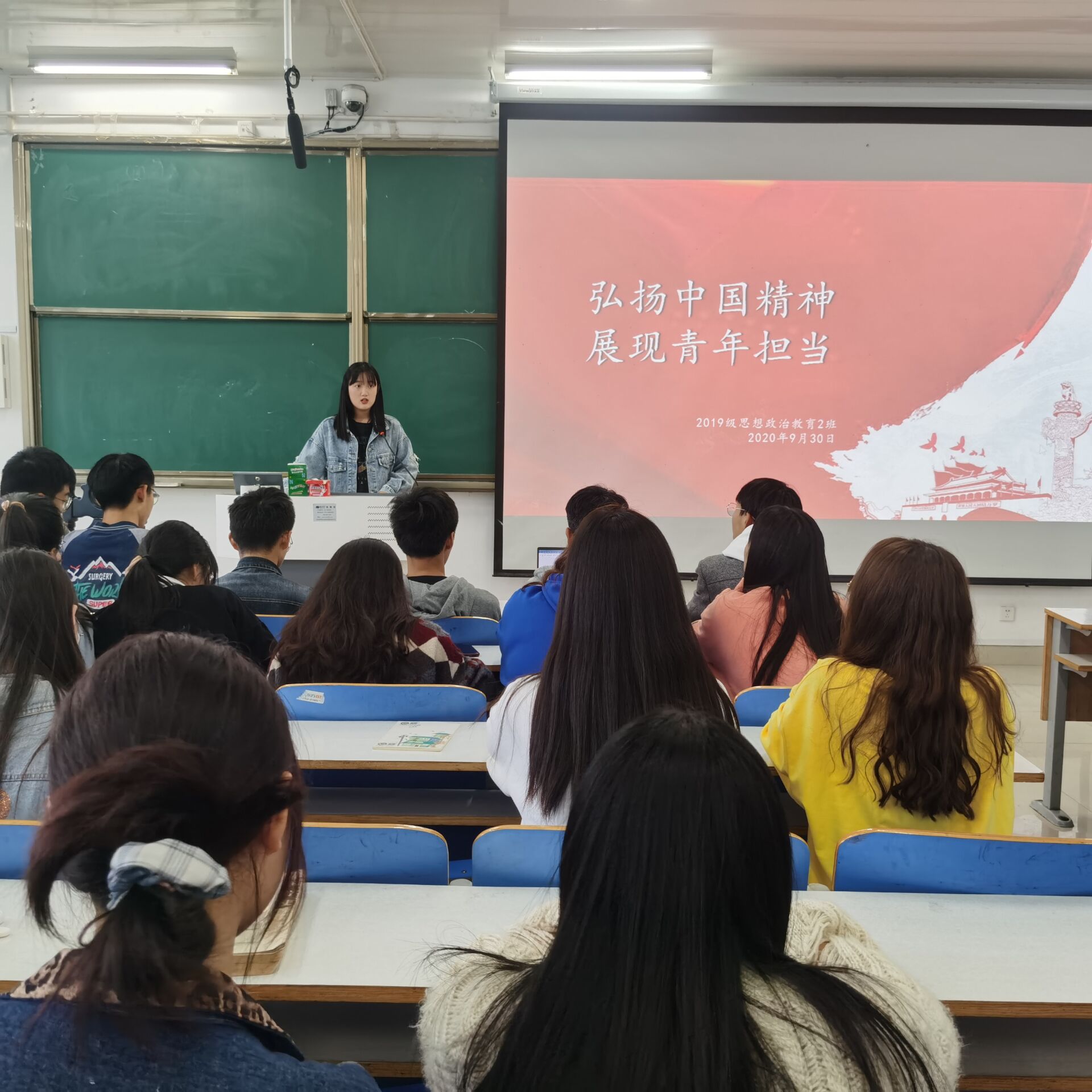 10月4日下午,小说狂人 2019级思想政治教育二班在社科楼514教室召开了“弘扬中国精神,展现青年担当”主题团课。2019级思想政治教育二班全体成员共同参会。会议由团支书孙雅娴主持。