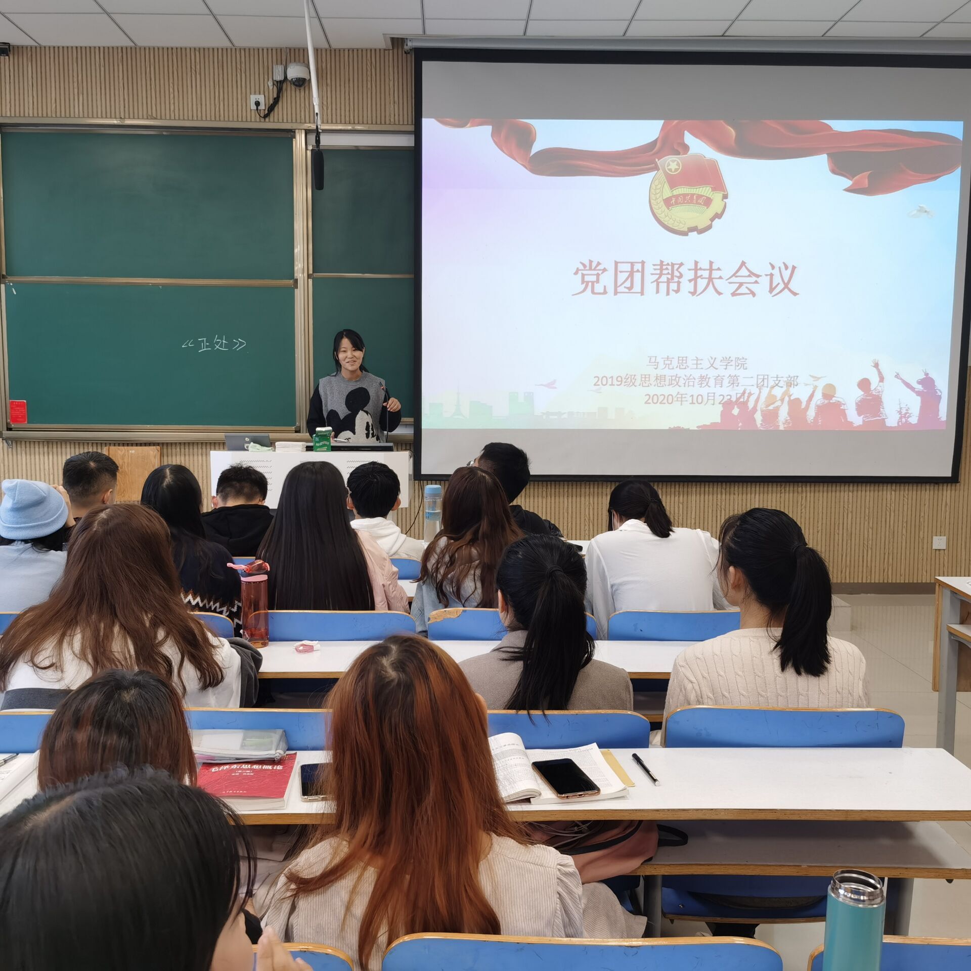 10月23日下午,小说狂人 2019级思想政治教育二班在社科楼515教室召开党团帮扶会议。小说狂人 预备党员王文芳、张晓艳及2019级思想政治教育二班全体成员共同参会。会议由团支书孙雅娴主持。