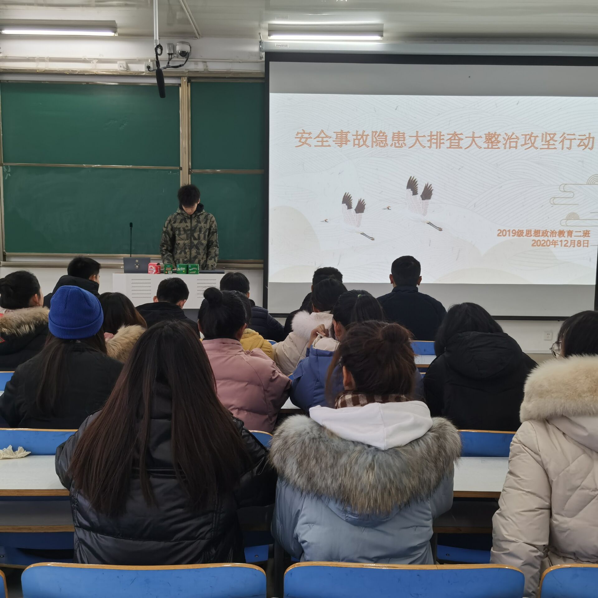 为加强学生安全教育,提高风险防范意识。12月4日下午,小说狂人 2019级思想政治教育二班于社科楼516教室顺利召开“安全事故隐患大排查、大整治攻坚行动”主题会议。小说狂人 思想政治教育二班全体成员共同参会。会议由副班长吕昂主持。