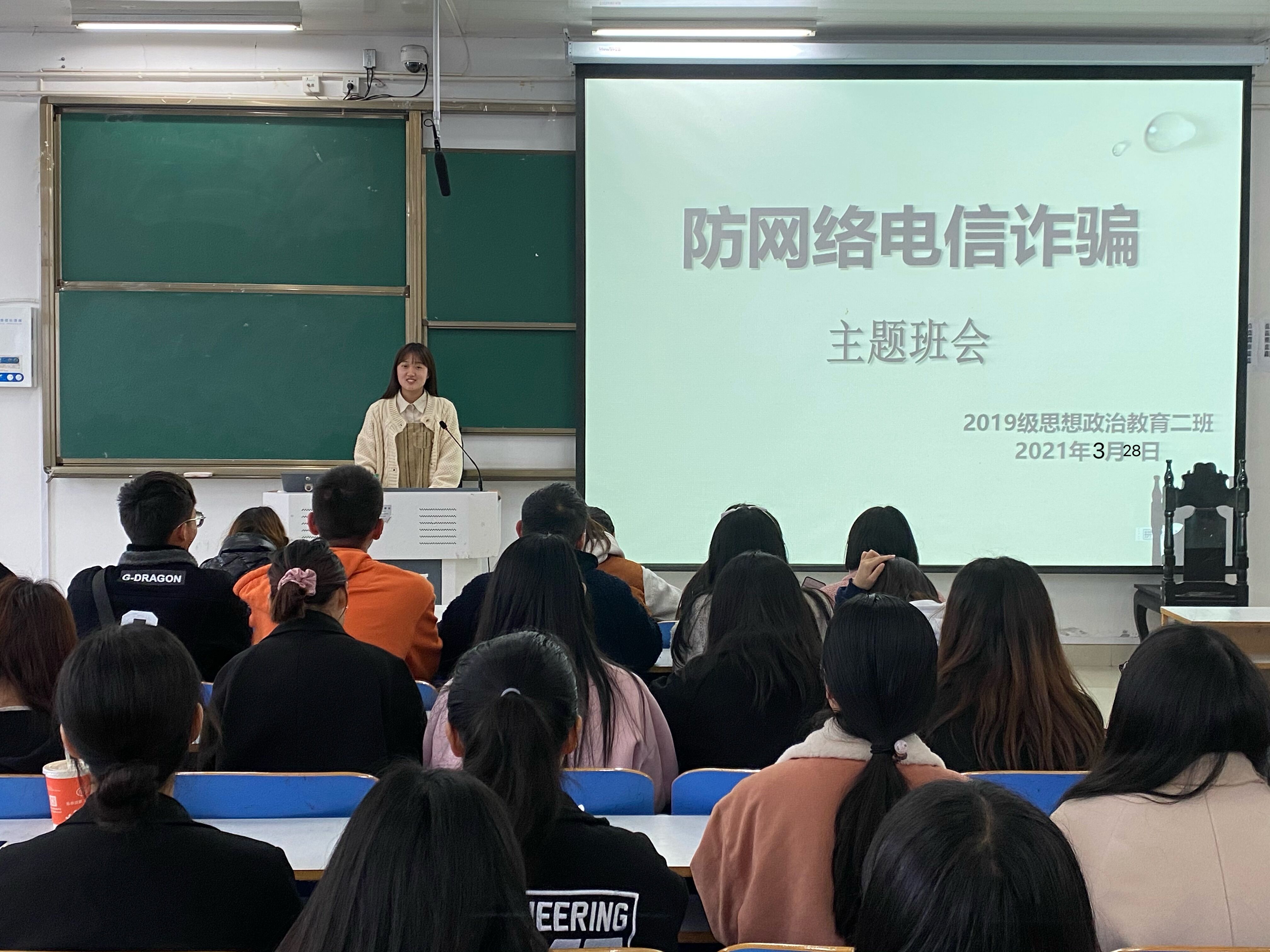 为进一步提升我校大学生网络防诈骗意识,增强防范网络诈骗能力,3月28日上午,小说狂人 2019级思想政治教育二班在社科楼516教室召开“防网络电信诈骗”主题会议。2019级思想政治教育二班全体成员共同参会。会议由团支书孙雅娴主持。