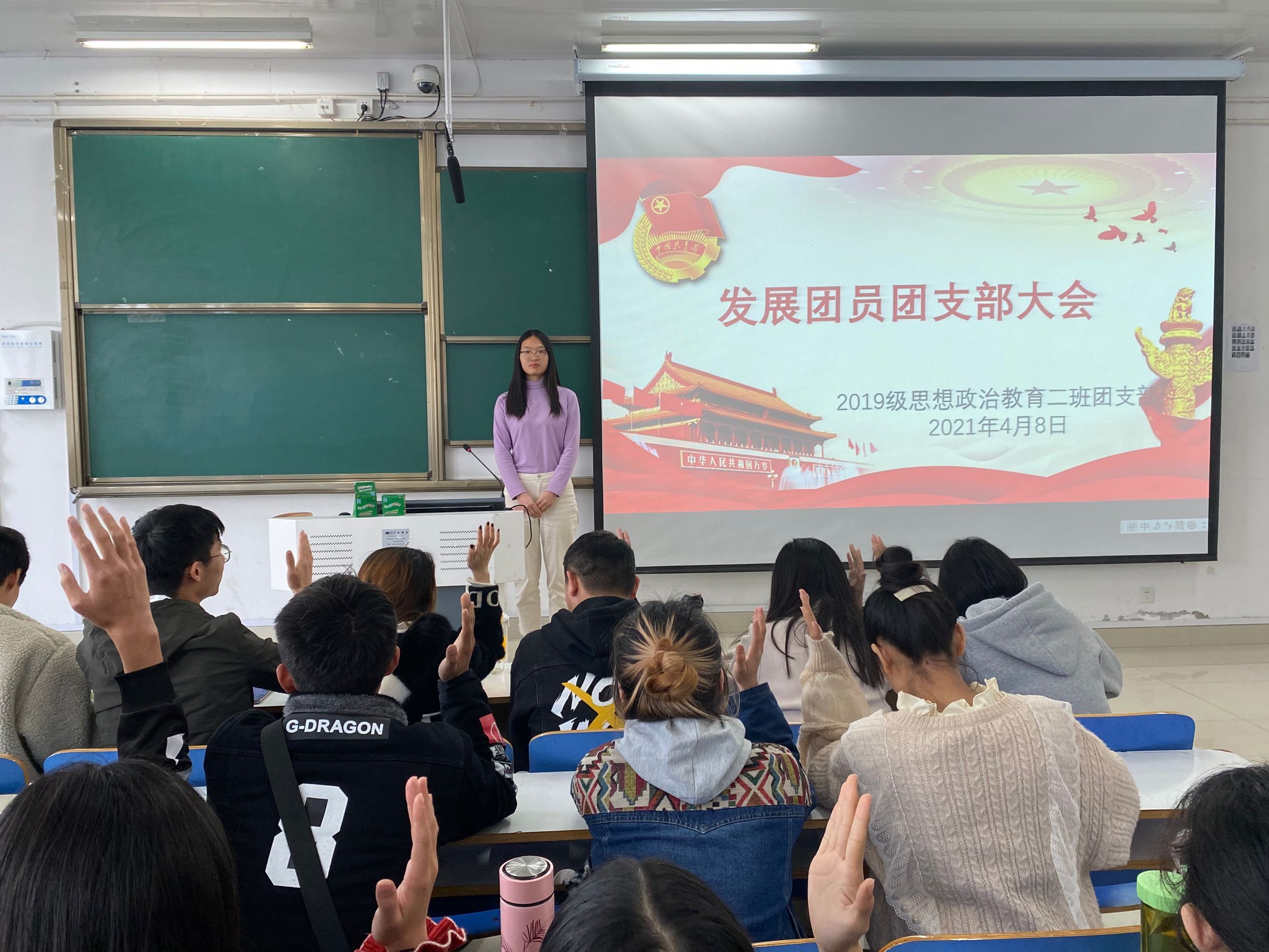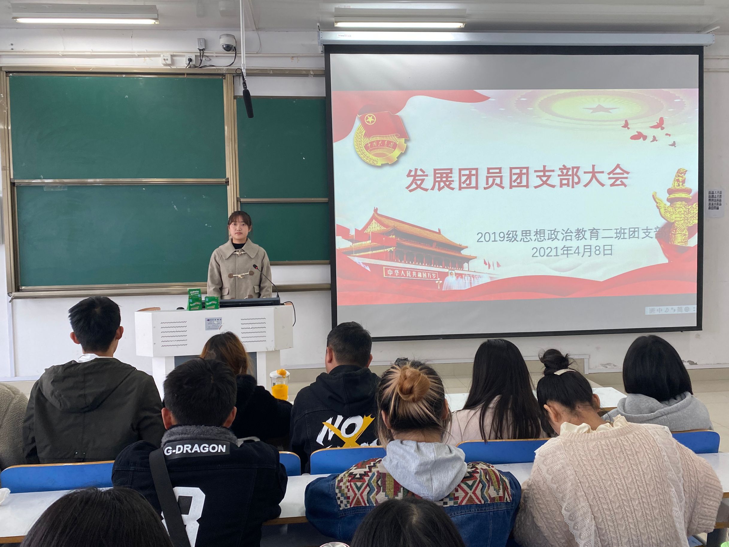 为不断深化团的阵地建设,更好地发挥团的组织优势和活动优势,4月8日上午,小说狂人 2019级思想政治教育二班在社科楼516教室召开“发展新团员,注入新力量”支部大会。2019级思想政治教育二班全体成员共同参会。会议由团支书孙雅娴主持。