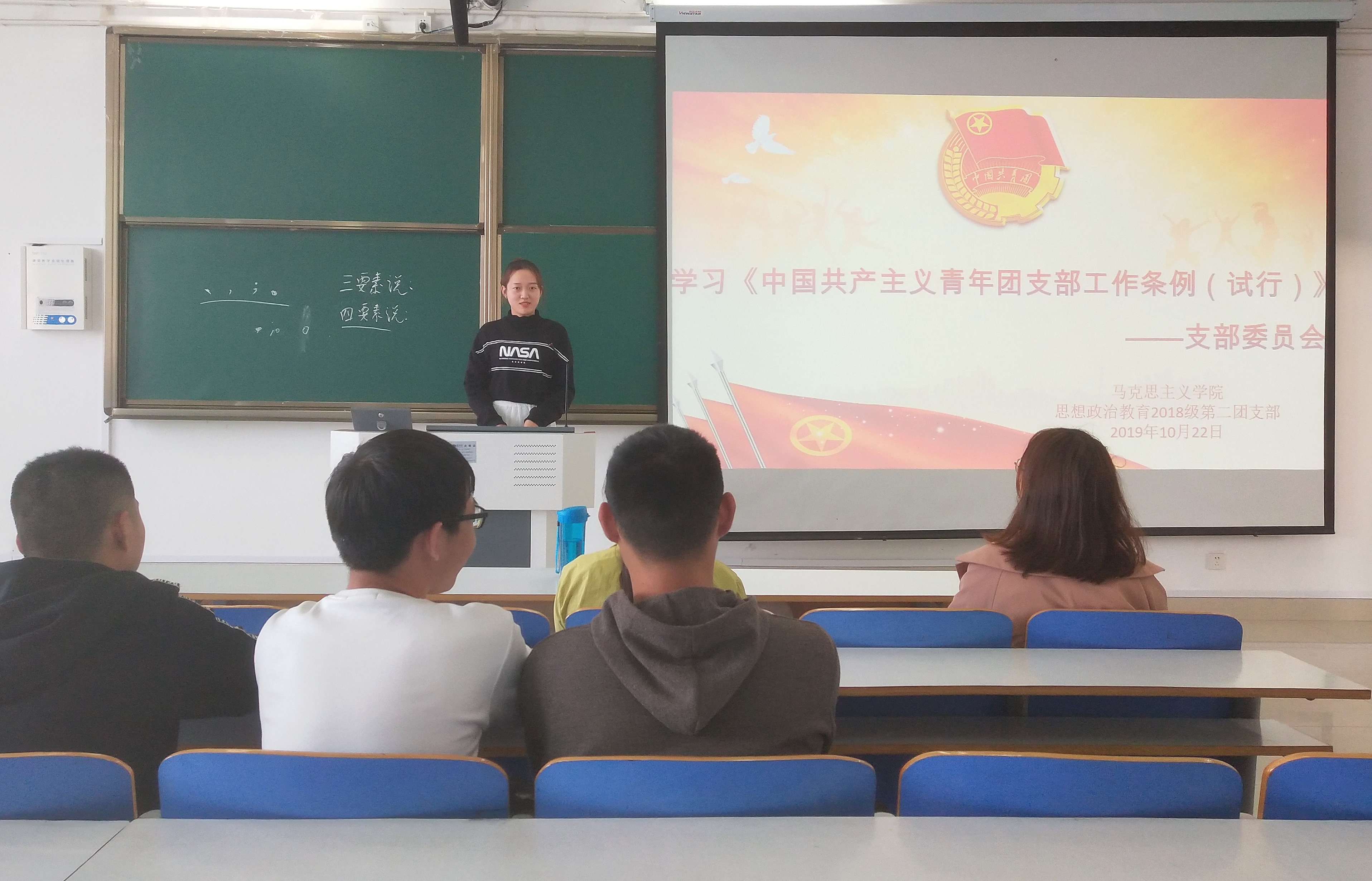10月22日上午,小说狂人 2018级思想政治教育第二团支部在社科楼514教室顺利开展了主题为“学习《中国共产主义青年团支部工作条例(试行)》”支部委员会。会议由团支部书记黄子晋主持。