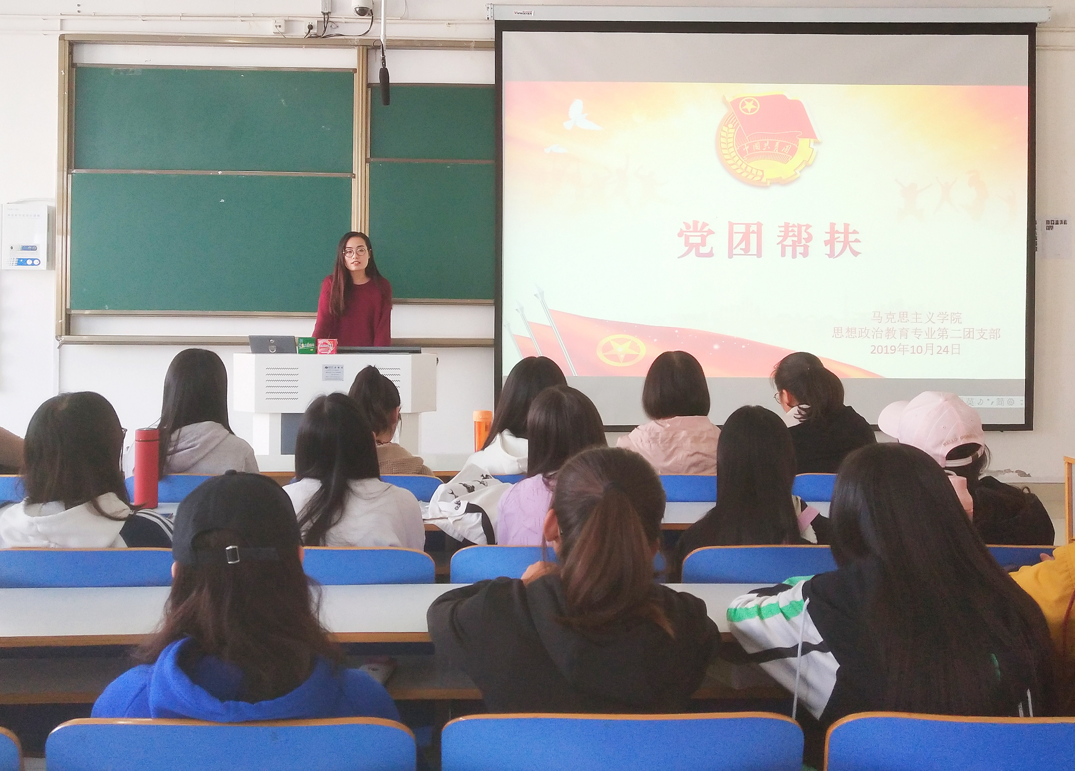 10月24日上午,小说狂人 2018级思想政治教育二班在社科楼516教室顺利开展党团帮扶活动。我班邀请学生党员代表韩嘉航参加本次交流活动。活动由团支书黄子晋主持。