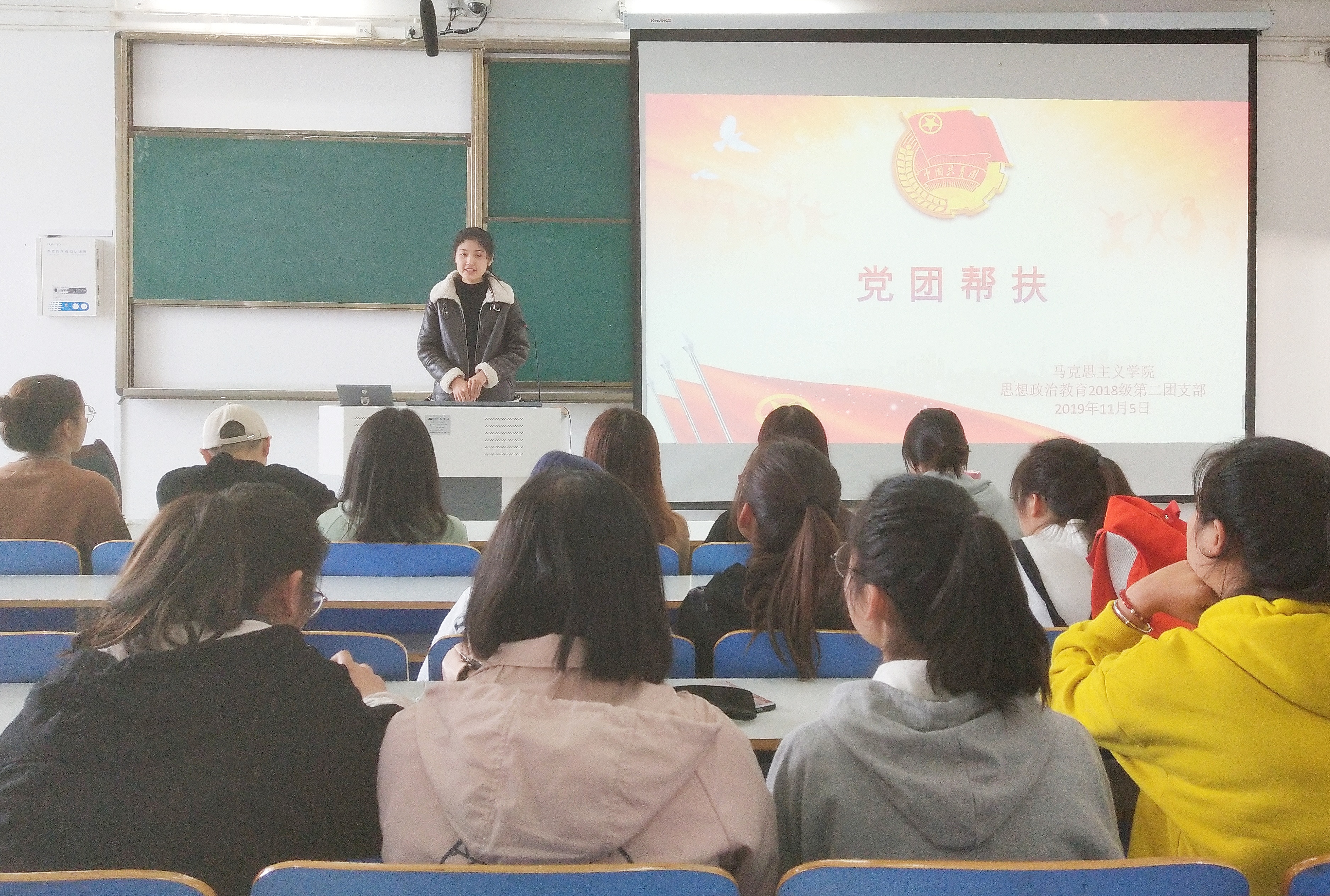 11月5日上午,小说狂人 2018级思想政治教育二班在社科楼514教室顺利开展了党团帮扶活动。我班邀请学生党员代表赵亚茹前来参加本次交流活动。活动由团支书黄子晋主持。