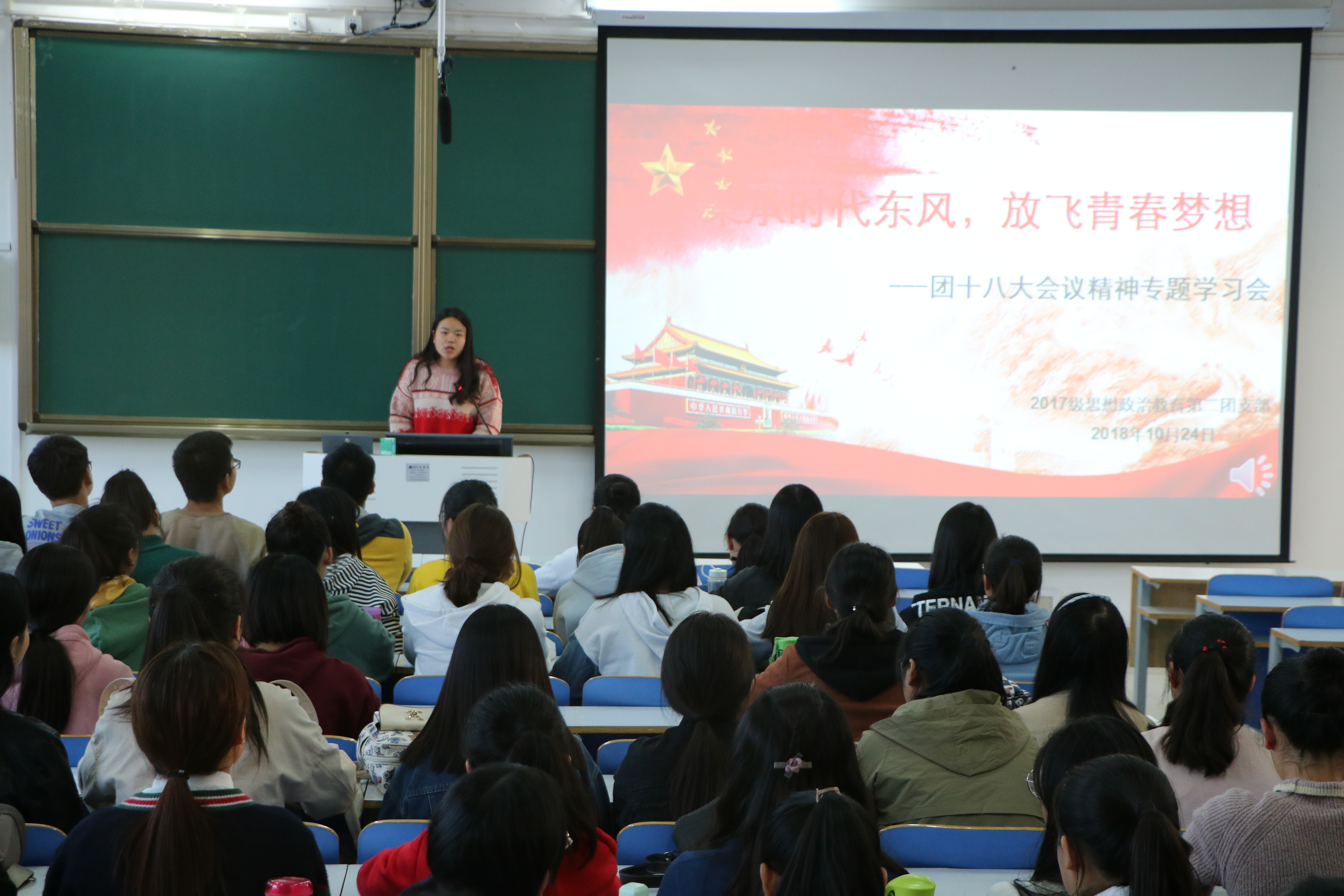 10月23日下午,思想政治教育第二团支部在社科楼515教室开展了题为“秉承时代东风,放飞青春梦想”的团十八大会议精神专题学习会,会议由团支书秦康怡主持。